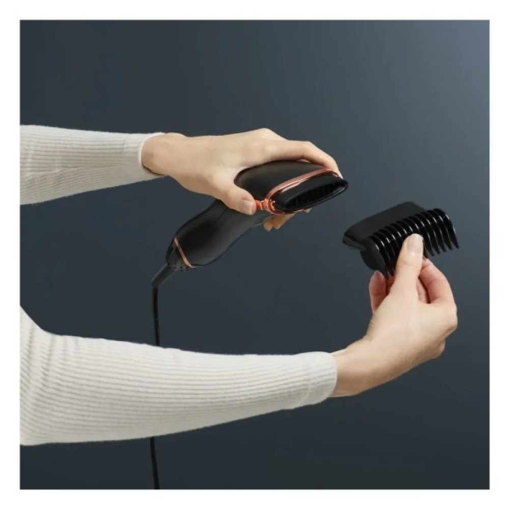 Пристроєм зручно користуватися завдяки довжині шнура 1.8 м, що гарантує максимальну свободу рухів під час стайлінгу. Його вага складає лише 0.3 кг, знижуючи навантаження на руки навіть під час тривалого застосування. А функція подачі холодного повітря дозволяє зафіксувати вашу зачіску, щоб вона залишалася стильною і стійкою протягом усього дня.