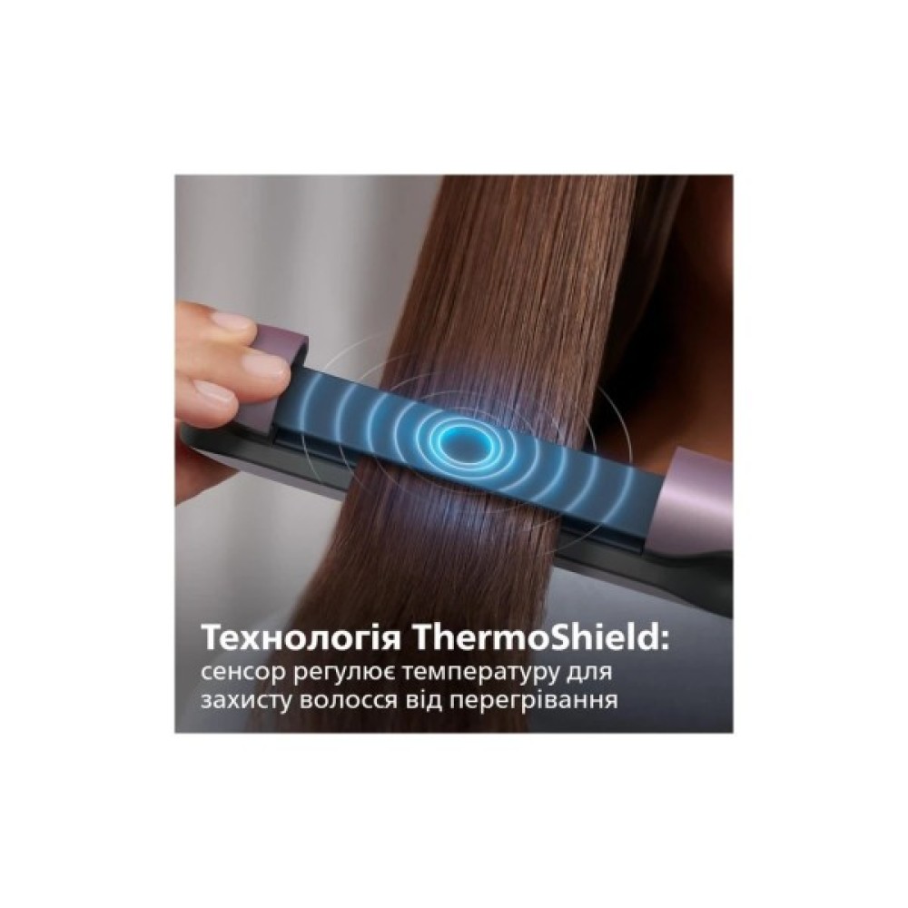 Технологія ThermoShield дозволяє укладати волосся із кращим захистом від перегрівання. Її датчик регулює температуру так, що ви отримуєте неперевершену рівномірну укладку волосся від коренів до кінчиків.