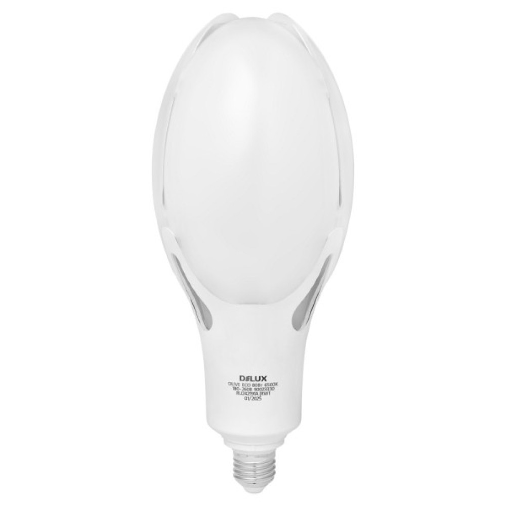 Лампочка Delux OLIVE ECO - Високоякісні компоненти забезпечують високу світлову віддачу 100 лм/Вт, безпечну та стабільну роботу лампи. Особлива структура лампи сприяє відміному тепловідводу і позитивно впливає на строк служби. Лампи призначені для використання у вуличних світильниках, для основного освітлення торгових центрів, магазинів, складів.