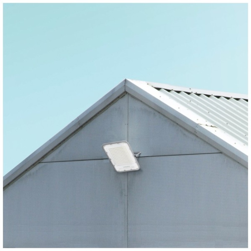 Корпус LED прожектора має сірий колір і чудово протистоїть волозі, дощу, снігопадам та іншим погодним опадам. Клас захисту IP65 і високий захист від ударів IK08. Спеціальне захисне покриття збереже прожектор від подряпин під час монтажу або інших неприємностей у процесі експлуатації.