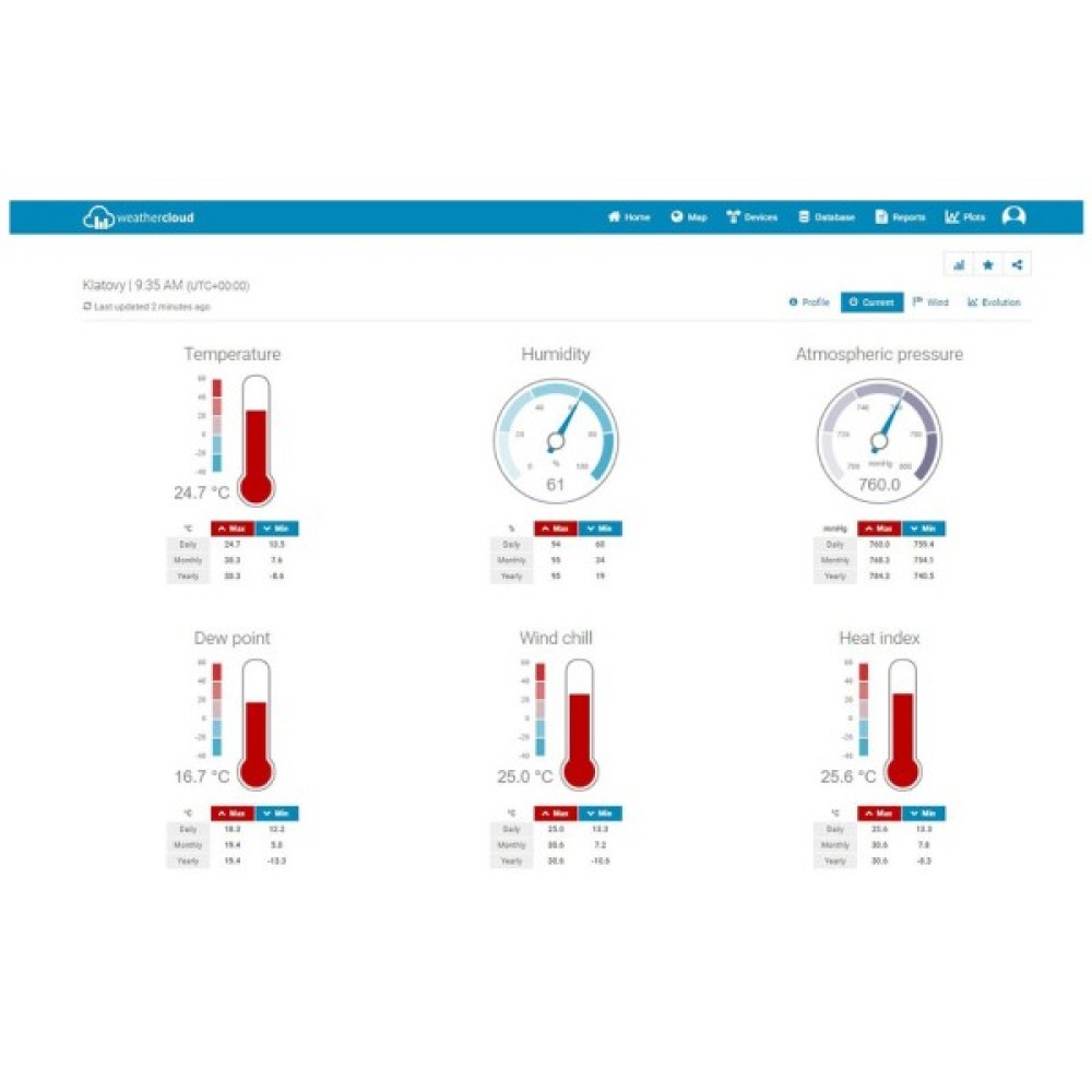 - Підтримка загальнодоступних метеорологічних платформ «Weather Underground» та «Weathercloud»