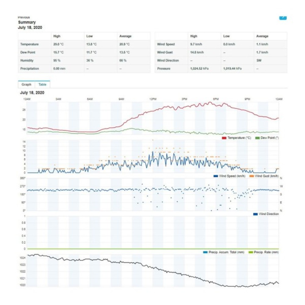 - Вимірювання кількості опадів із частотою випадання, щоденної, щотижневої або щомісячної (мм/дюйми)
