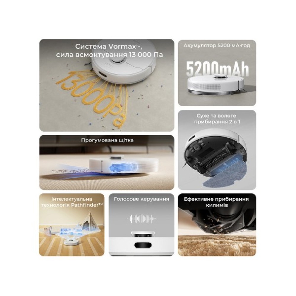 Пилосос Dreame F10 White (RLF11SA) – це досконалість у прибиранні, яка стає вашим незамінним помічником в оселі. Цей робот-пилосос вміє відмінно впоратися з сухим та вологим прибиранням завдяки високій потужності всмоктування 13 000 Па. Він здатний усунути навіть найскладніші забруднення на будь-якій поверхні, включаючи килими, завдяки функції Carpet Boost. Вибір ефективного прибирання по всьому дому забезпечує технологія Smart Pathfinder, яка використовує інтерактивне картографування для ідеального планування маршруту.