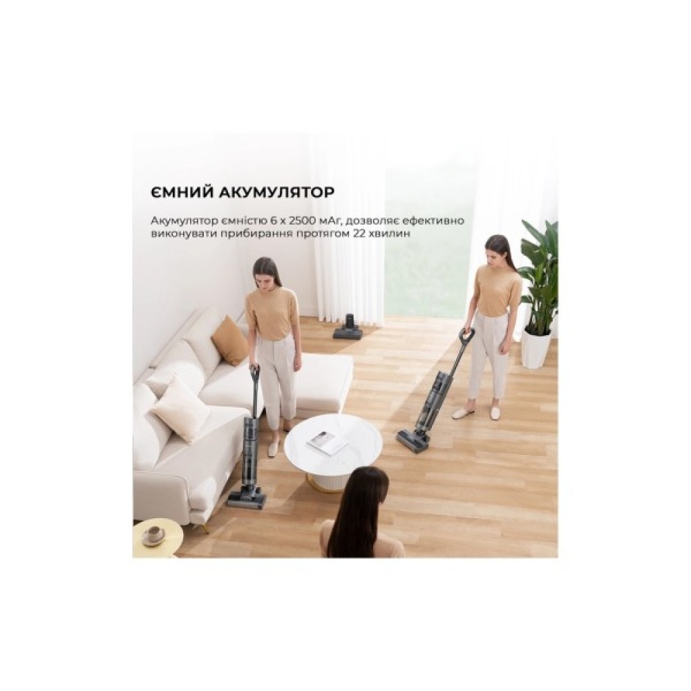 Основна перевага цього пилососа полягає у його бездротовій конструкції, що відкидає обмеження, пов’язані з кабелями, та забезпечує невимушений рух по всьому дому. Акумулятор ємністю 2500 мАг дарує можливість безперервної роботи до 30 хвилин. Якщо заряд все ж таки закінчився, повне відновлення енергетичних сил займає лише 4.5 години.