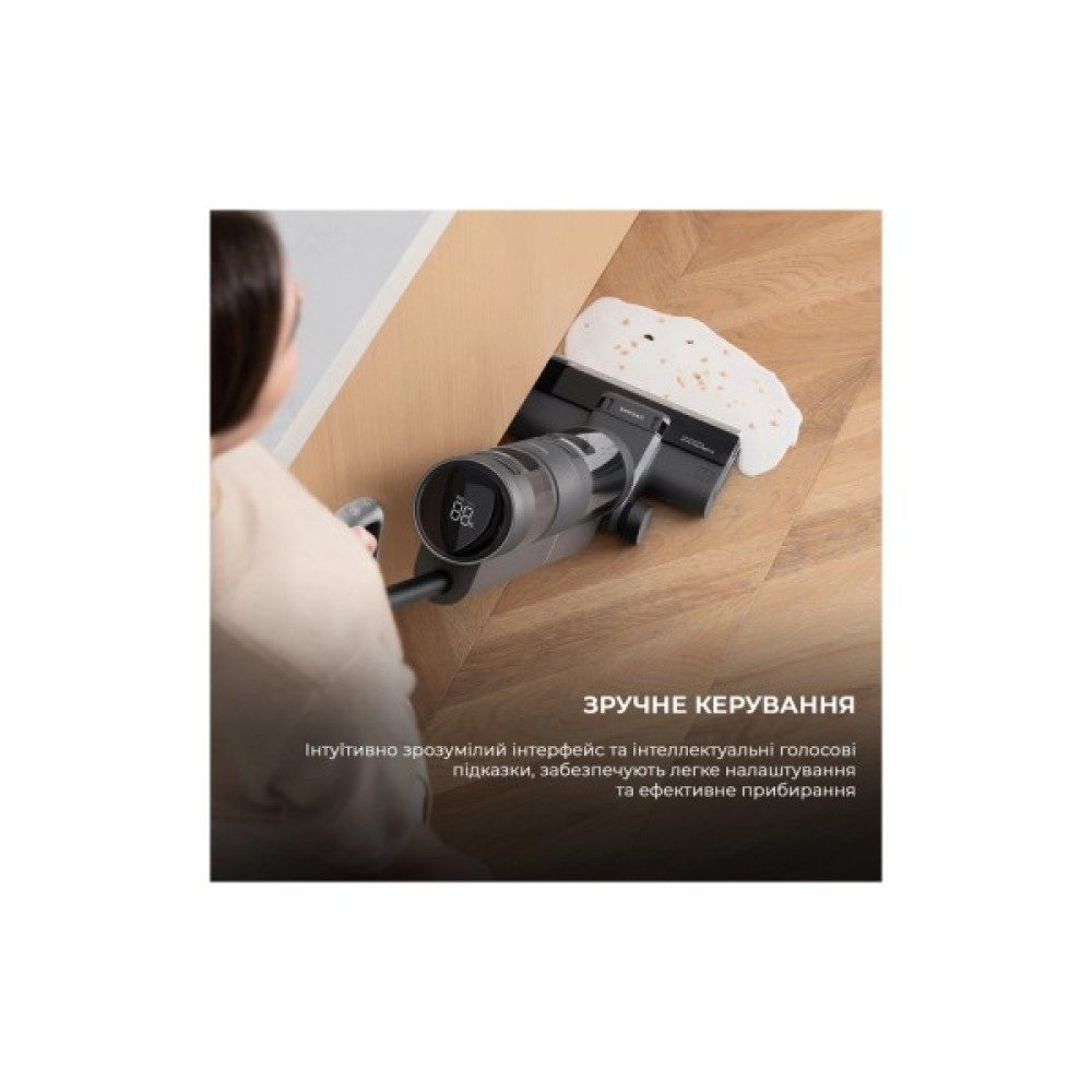 Дисплей, розташований на ручці керування, надає вам доступ до всіх ключових параметрів пилососа, таких як рівень заряду акумулятора і поточний робочий режим. Це дозволяє миттєво реагувати на потреби прибирання і максимально економити заряд.