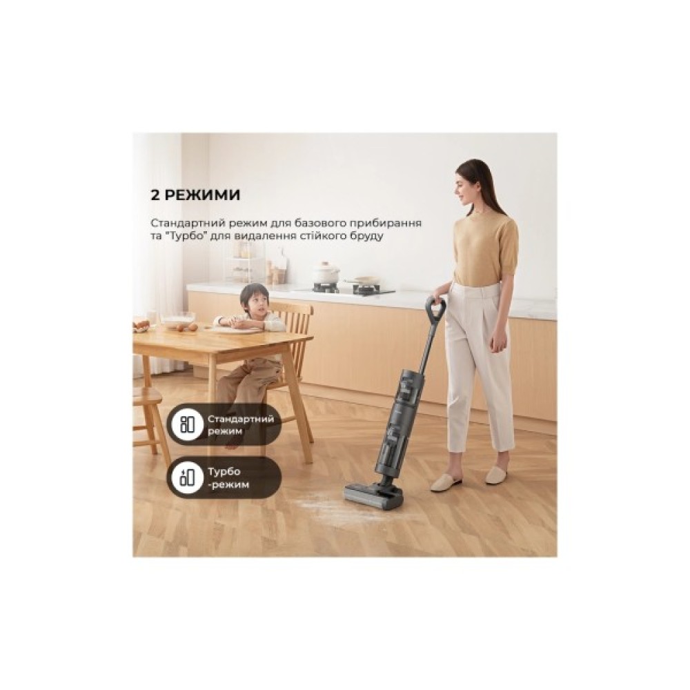 Обираючи між режимами Турбо і Стандартний, ви можете адаптувати потужність прибирання відповідно до своїх потреб. Турбо-режим ефективний для складних завдань, в той час як Стандартний ідеально підходить для щоденного використання.