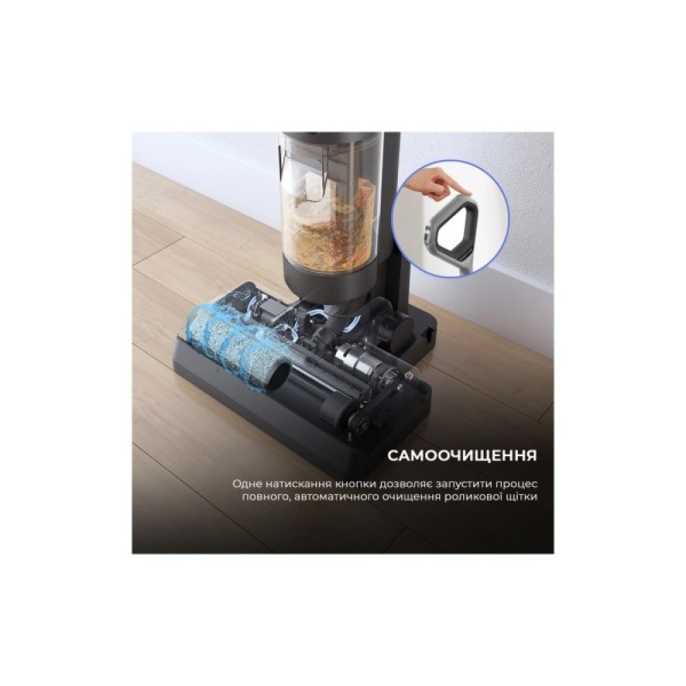 Для економії часу та підвищення комфорту пристрій обладнано системою самоочищення. Поділ контейнера на відділення для чистої та брудної води робить процес прибирання гігієнічним, запобігаючи повторному забрудненню підлоги.