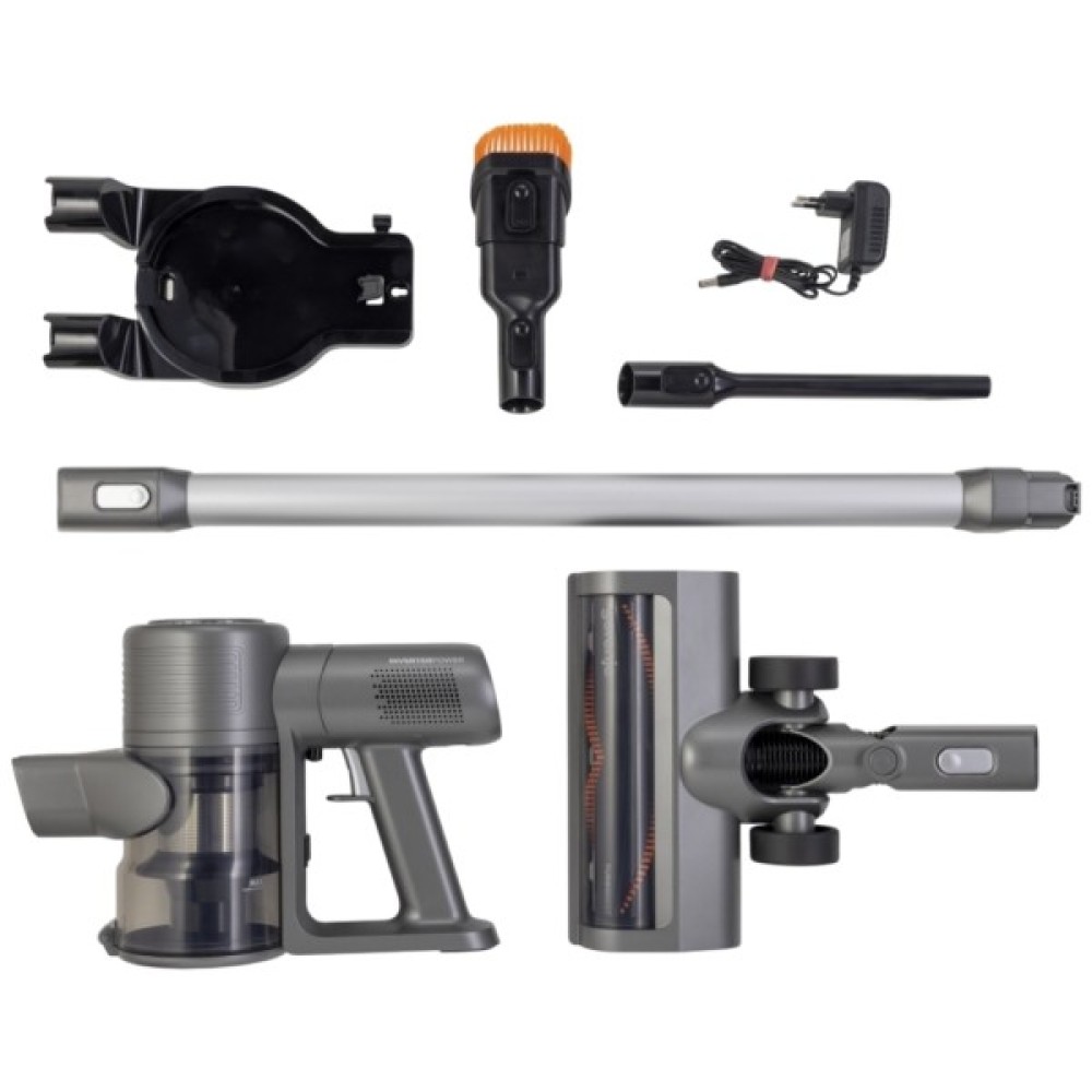 З контейнером для пилу об'ємом 0.5 л цей пилосос пропонує зручність без додаткових витрат на змінні мішки. Керування пристроєм знаходиться прямо на ручці, що робить його надзвичайно зручним у використанні. Бездротовий дизайн позбавляє від зайвих клопотів з шнуром, дозволяючи вільно переміщатися під час прибирання.