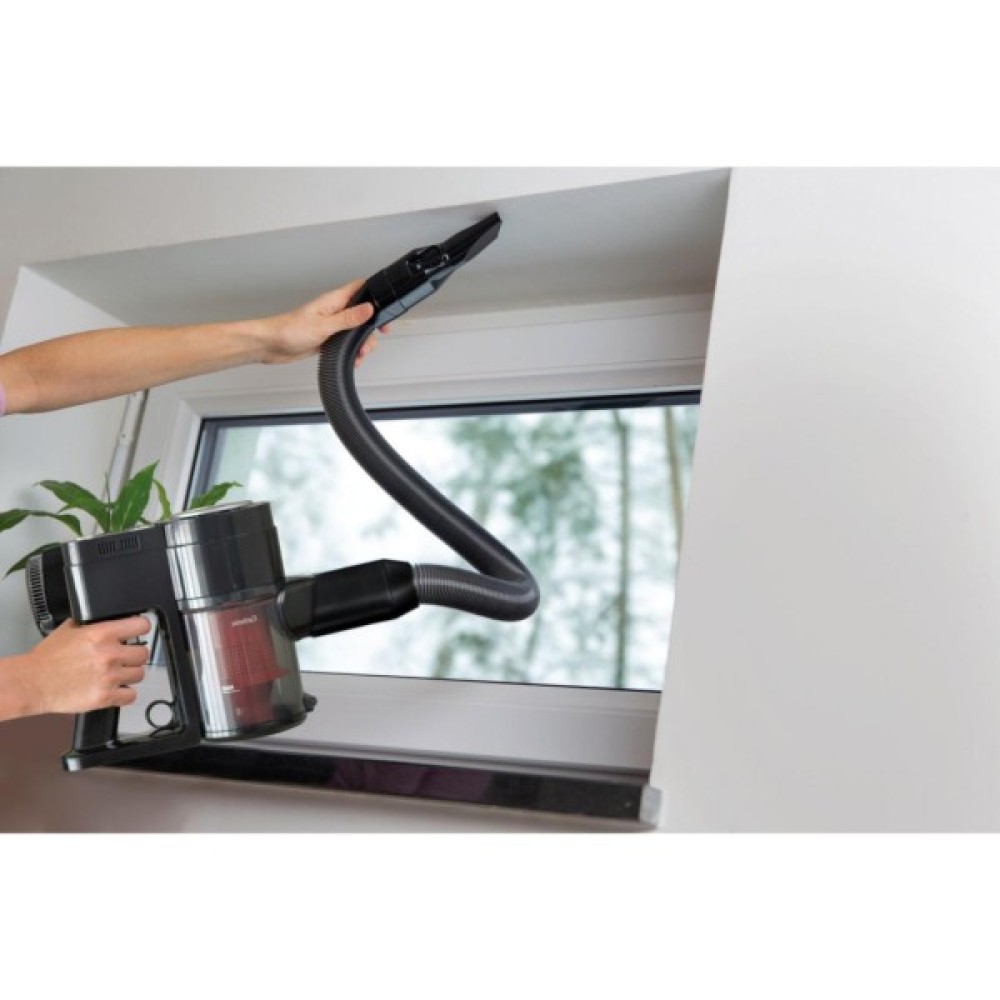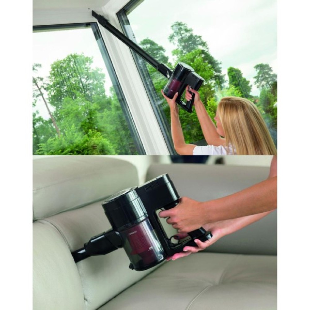 Завдяки циклонній системі фільтрації разом із НЕРА-фільтром, він ефективно затримує всі дрібні частки пилу. Його ємність пилозбірника 0.5 літра дозволяє зосередитися на прибиранні, не відволікаючись на постійне очищення контейнера. Індикатор заряду акумулятора, розташований на ручці, завжди підкаже, коли потрібно зарядити пристрій, щоб жодного разу не перервати процес очищення.