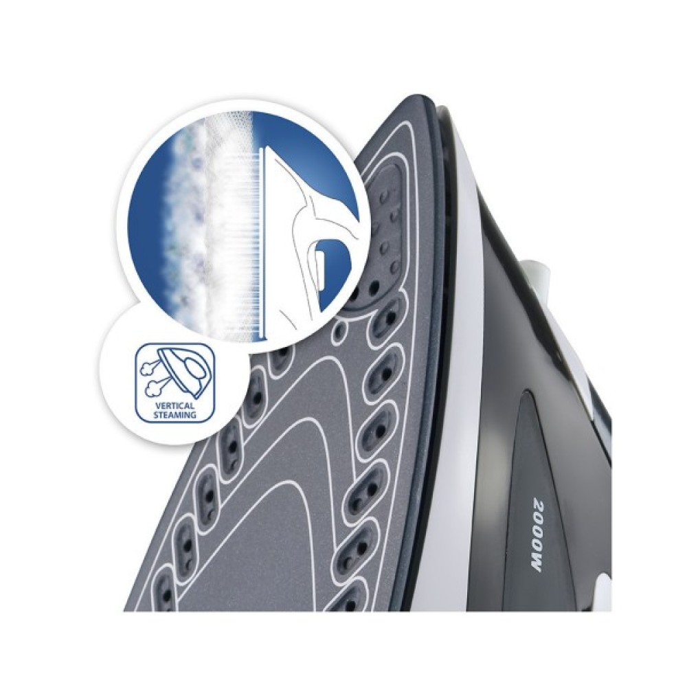 Потужна парова праска із сучасним ергономічним дизайном. Резервуар для води 290 мл забезпечує тривалий процес прасування. Керамічне покриття підошви допомагає зробити процес легшим завдяки своїй гладкій поверхні. Подача постійної пари 20 г/хв пом'якшує одяг для полегшення прасування. Потужний паровий удар 100 г/хв дозволяє позбавитися складніших і впертих складок. Вертикальна пара дозволяє надати гарний і акуратний вигляд речам, шторам і костюмам, що висять. Вузький носик праски допоможе розгладити важкодоступні місця. Терморегулятор дозволяє легко підібрати необхідний режим прасування. Зручне розташування кнопок "спрей" та "пар". Функція самоочищення запобігає проблемам з очищенням підошви та сприяють збільшенню терміну служби праски.