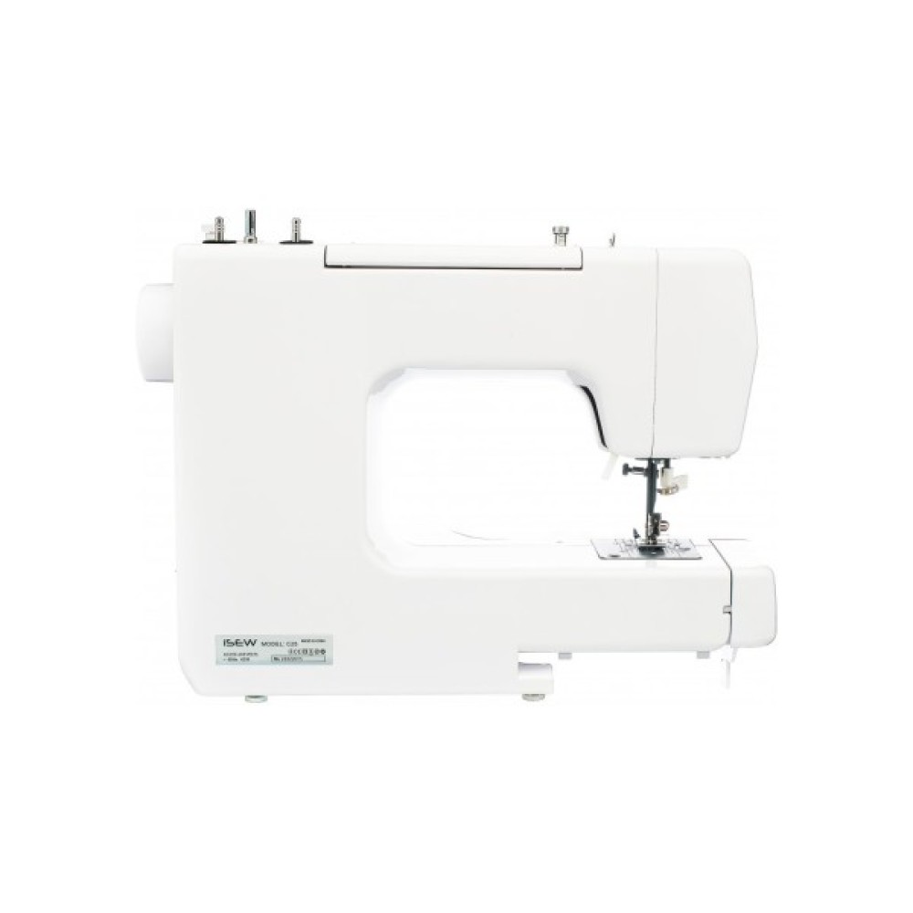 Швейна машина iSew C 25 електромеханічного класу з вертикальною човниковою системою та набором із 25 швейних операцій, серед яких еластичні, оверлочні, потайні, робочі та декоративні строчки, а також петлю у напівавтоматичному режимі. Варто відзначити, що виробник оснастив машину автоматичним ниткодівачем, яскравим світлодіодним підсвічуванням області шиття, системою швидкої зміни лапки, рукавною консоллю, обрізником нитки і багатьма іншими опціями для комфортного шиття. Посилений транспортер тканини, внутрішній металевий каркас, потужний двигун — все це дозволить не тільки професійно шити, а й працювати в техніці чворк, квілтинг і скрапбукінг.