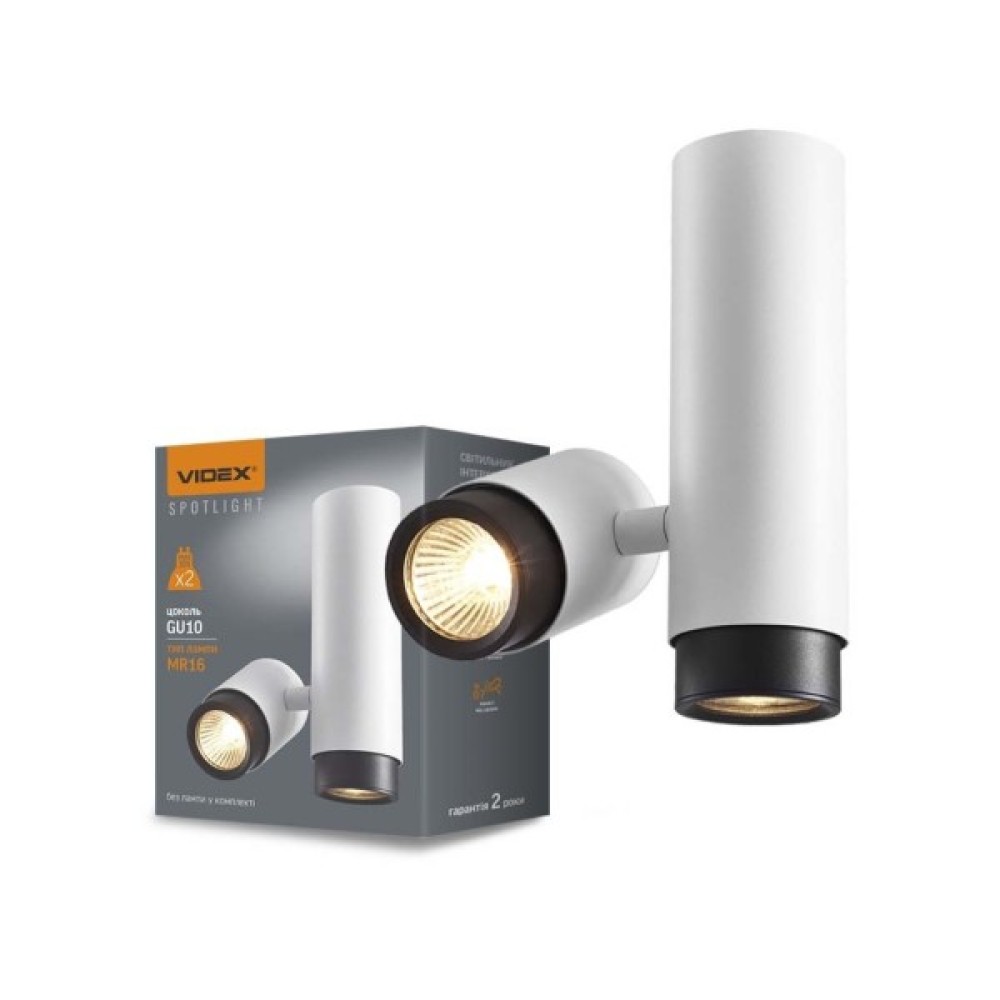Світильник, точковий, Videx, під, лампу, GU10, SPF07, накладний, поворотний, подвійний, білий, VLSPF07WB