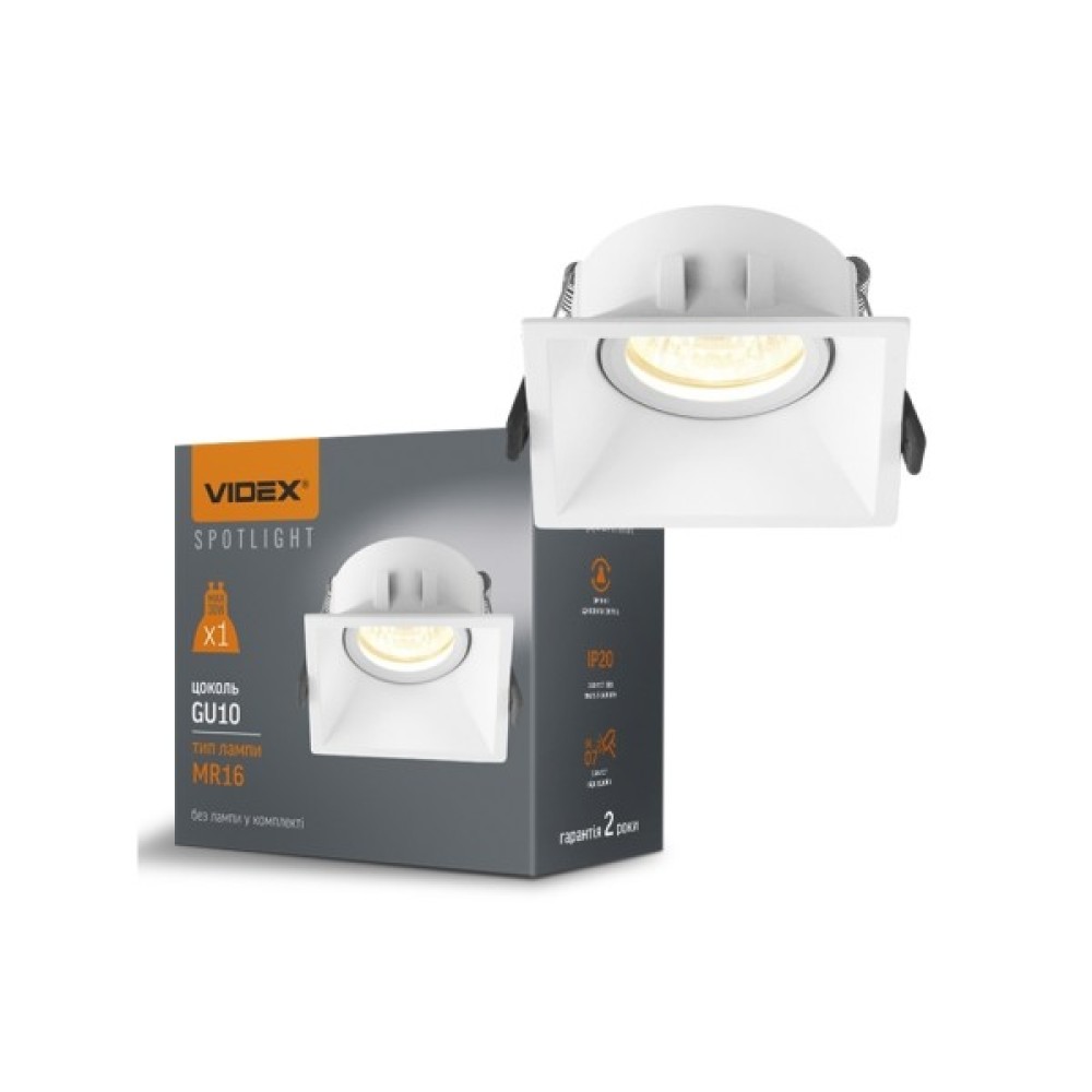 Світильник, точковий, Videx, під, лампу, GU10, врізний, Квадрат, Білий, VLSPF09SW
