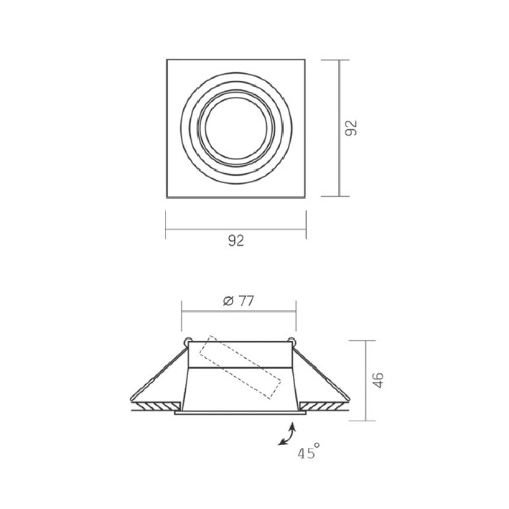 Модель: під лампу GU10 врізний Квадрат Чорний