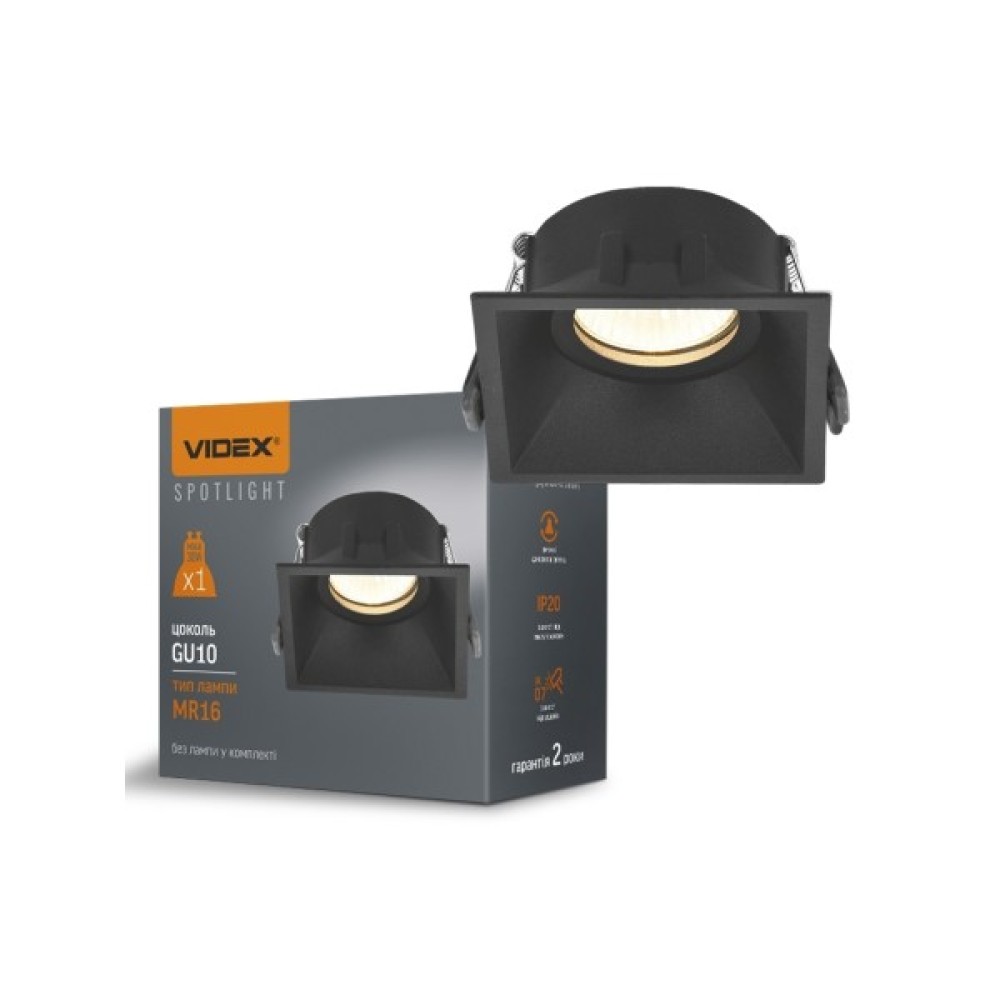 Світильник, точковий, Videx, під, лампу, GU10, врізний, Квадрат, Чорний, VLSPF09SB