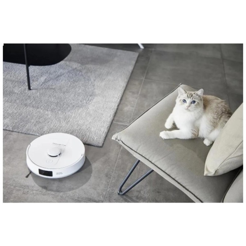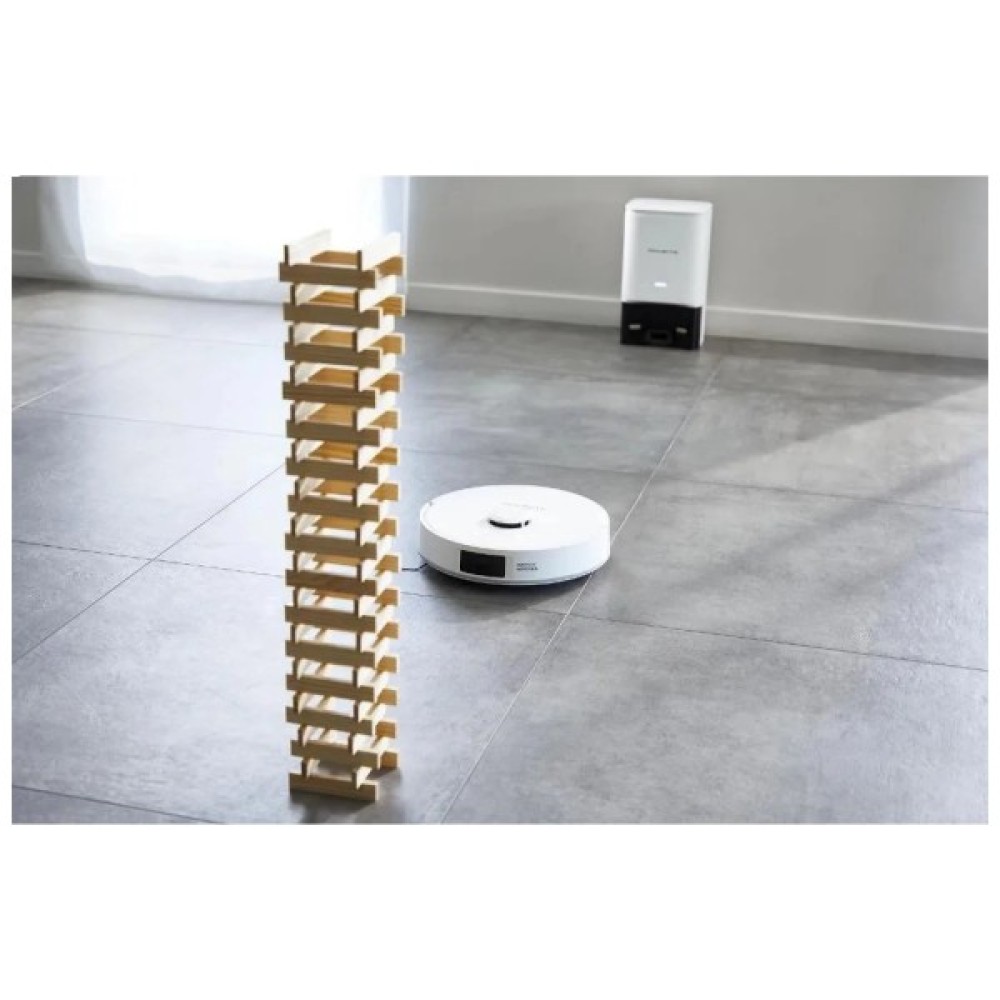 Однією з найважливіших особливостей цієї моделі є станція автовивантаження сміття, яка автоматично очищує контейнер, не вимагаючи постійної уваги з вашого боку. Завдяки ємності пилозбірника 0.3 л та водяного баку 0.28 л, пилосос впевнено справляється з прибиранням на площах до 120 м², задовольняючи потреби навіть великих сімей.