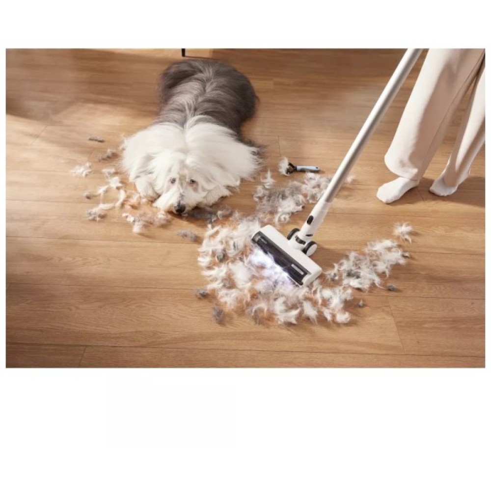 Цей пилосос оснащений потужним двигуном SwitchPro, який дозволяє плавно перемикатися між режимами мийного та сухого прибирання. Розкладка корпусу на 180° надає можливість легко очищати під меблями, дозволяючи пристрою нахилятися до мінімальної висоти лише 13 см, що ідеально для прибирання у важкодоступних місцях. Подвійні скребки DualBlock Anti-Tangle розроблені так, щоб утримувати волосся та видаляти бруд і воду, попереджаючи намотування волосся на щітки.