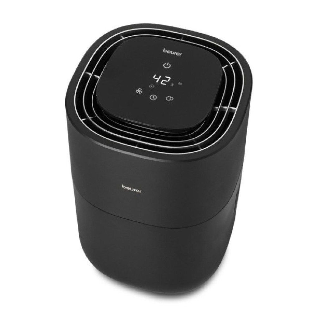 Зволожувач повітря Beurer LB 200 в актуальному дизайні оснащений автоматичним інтелектуальним режимом для постійного гігієнічного зволоження. Три рівні зволоження забезпечують вологість повітря 40%, 50% або 60%, а технологія природного холодного випаровування дозволяє знищити до 99,9% бактерій.1) Інтелектуальний автоматичний режим вимірює поточну вологість повітря та регулює потужність відповідно до бажаної вологості. Завдяки особливо тихому нічному режиму повітря у приміщенні постійно зволожується навіть у нічний час.