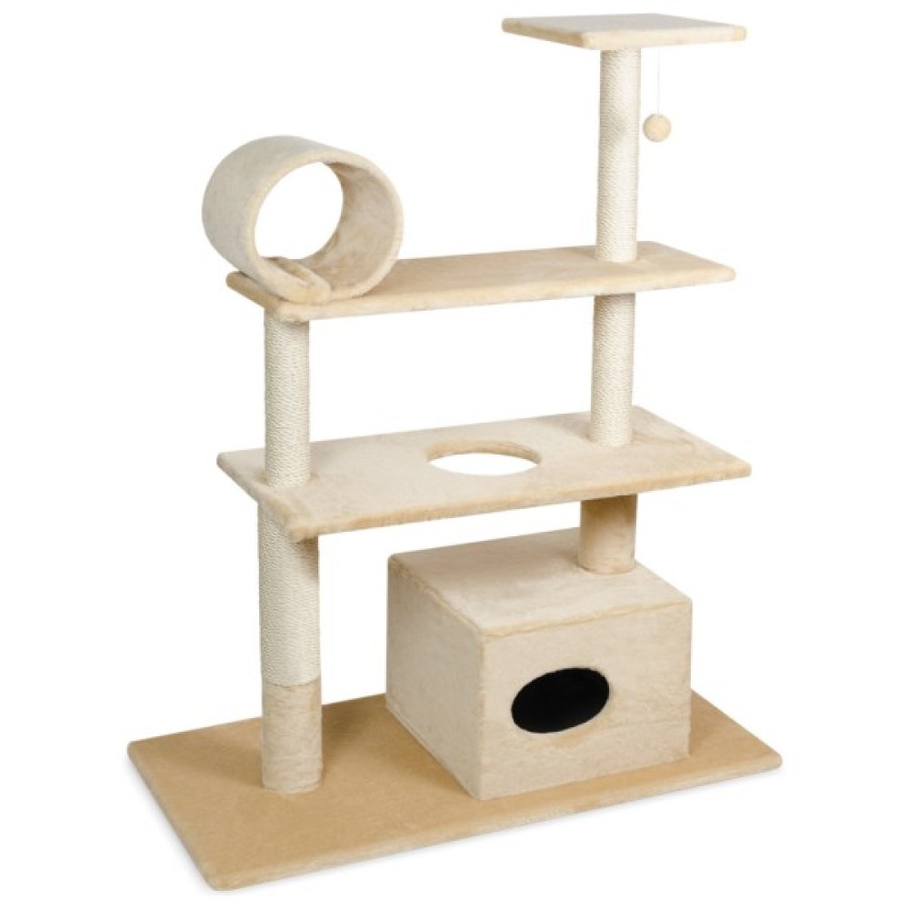 Другий ярус — це улюблене місце ігор, адже на нього можна застрибнути з будиночка, видертися стовпчиком або пролізти в отвір у центрі майданчика. Третій ярус закріплений на двох стовпчиках і пропонує улюбленцям широкий вибір розваг: вистрибування на майданчик, гра з помпоном на шнурку, гра в хованки в барабані, обшитому штучним хутром. Естетичність, надійність, довговічність і турбота про дозвілля вашого вихованця — ось основні принципи, якими керувалися творці моделі. Потіште свого котика розкішним місцем для розваг і відпочинку.