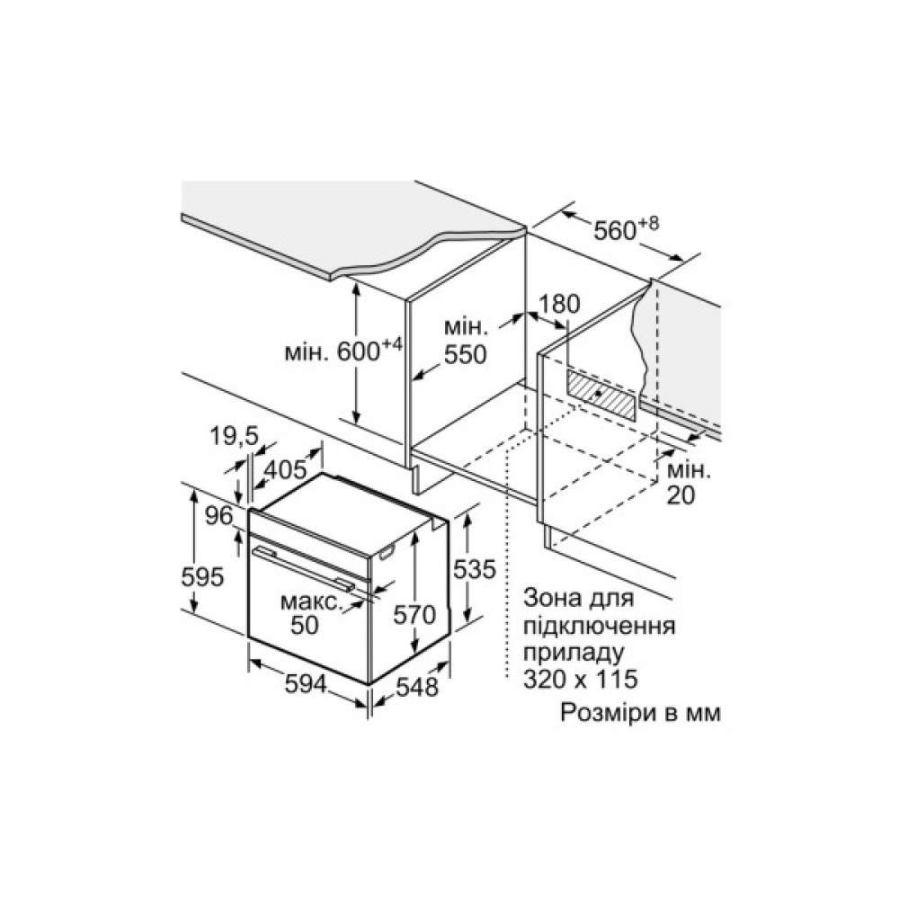 Розміри ніші для вбудовування 58.5-59.5 x 56-56.8 x 55 см