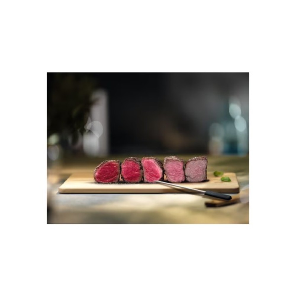 Завдяки нашому термощупу ви можете досягти відмінних результатів щоразу. Він дає змогу відстежувати процес приготування, вимірюючи внутрішню температуру продукту. Він навіть повідомить вас про те, коли ваша страва приготовлена до потрібної температури, і припинити готування.