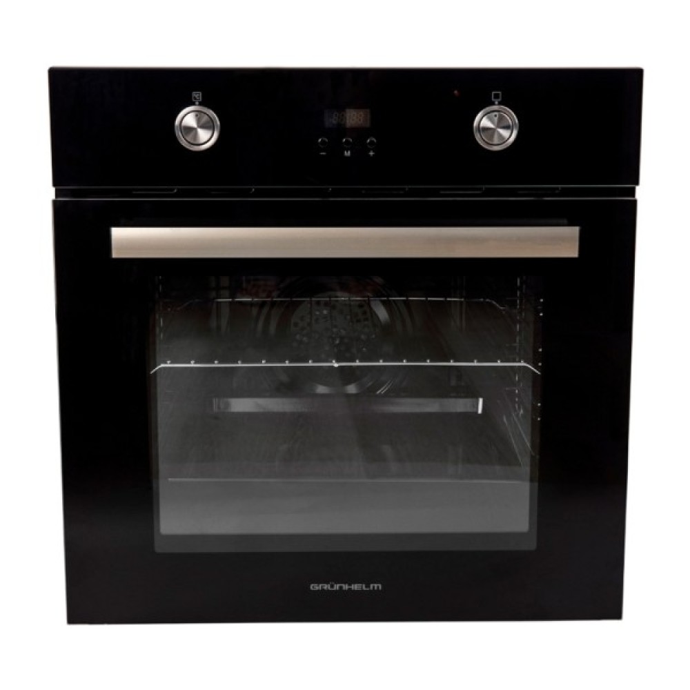 Духова шафа Grunhelm GDG 610 B – багатофункціональний пристрій, який стане незамінним помічником на Вашій кухні. Механічна система керування поворотними перемикачами не вимагає ніяких спеціальних навичок і знань, з нею впорається навіть новачок. Піч має високу потужність і має 6 режимів роботи (1-гриль; 2-нижній нагрів; 3-верхній + нижній нагрів; 4-верхній + нижній нагрів + конвекція; 5 - розморожування; 6 - гриль + конвекція). Дана модель виконана в класичному чорному кольорі, має збільшений внутрішній об'єм 61л. Духова шафа Grunhelm GDG 610 B оснащена цифровим дисплеєм-електронним таймером, також є функція автоматичного вимкнення, присутнє і внутрішнє освітлення. Духова шафа має незалежний від варильної поверхні тип установки. Всі вище перераховані якості роблять покупку даної духової шафи розумним і економічним рішенням.