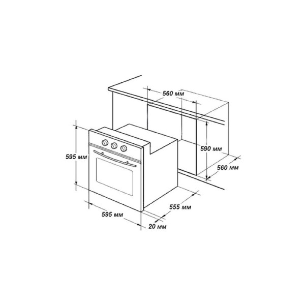 Розміри ніші для вбудовування 59.5 x 56 x 57 см