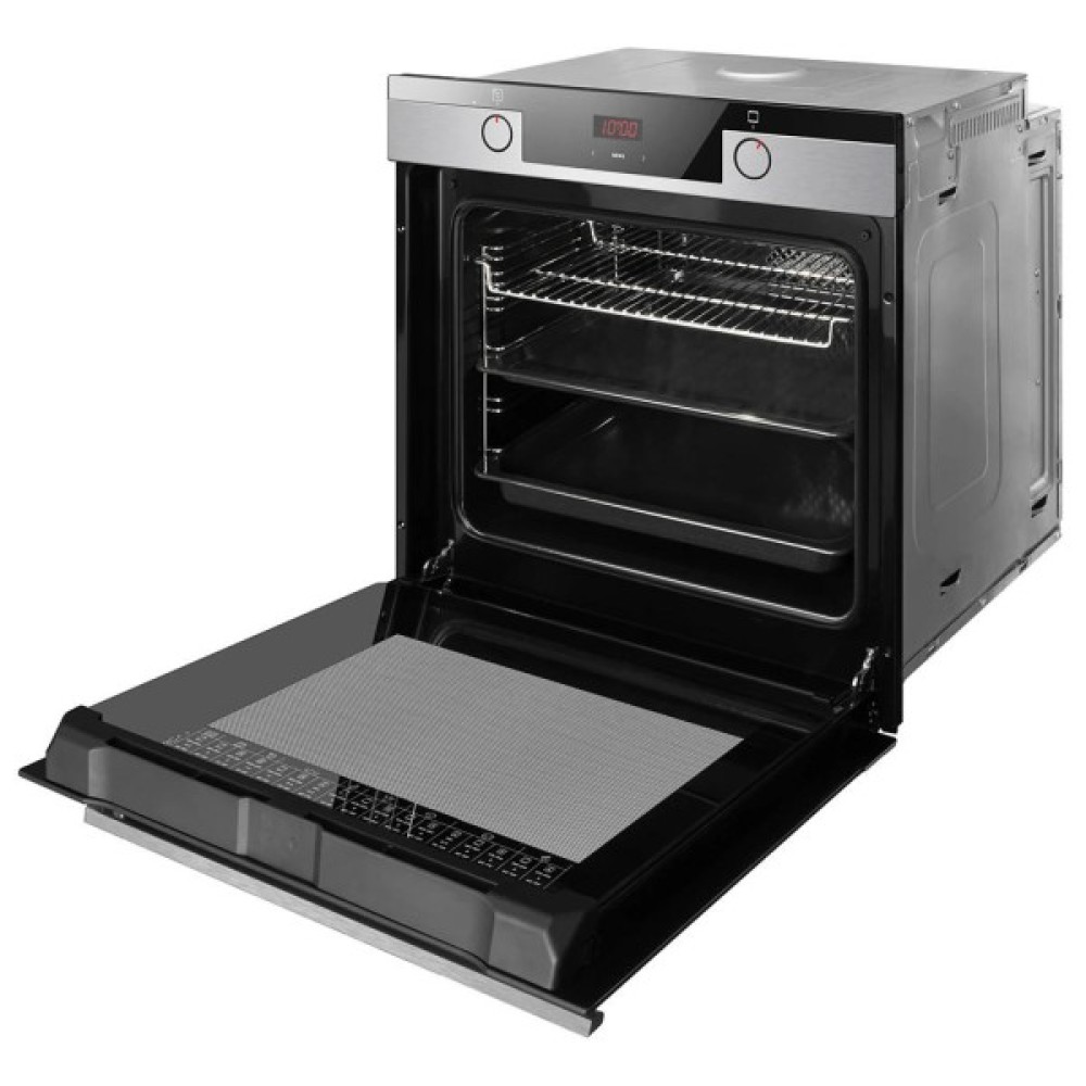 Рефлекторне внутрішнє скло посилює теплоізоляцію та сприяє рівномірному розподілу тепла, а знімні дверцята з системою легкого очищення значно спрощують догляд за технікою. Завдяки автоматичному відключенню після завершення програми, ви можете залишити духовку працювати без постійного нагляду — це додає спокою і гарантує безпеку.