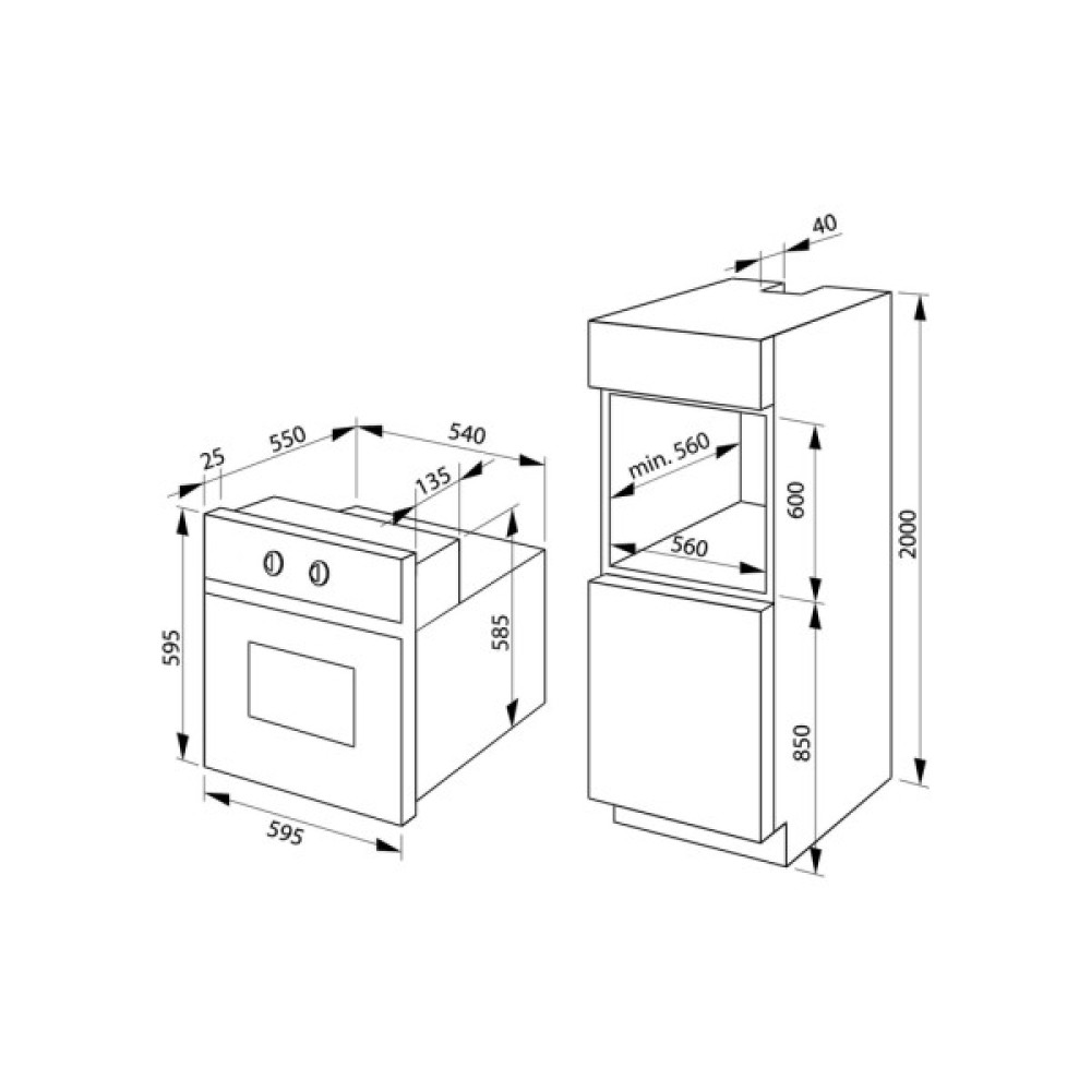 Розміри ніші для вбудовування 59.5 х 56 х 56 см