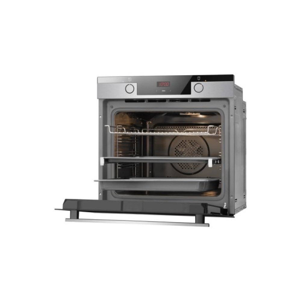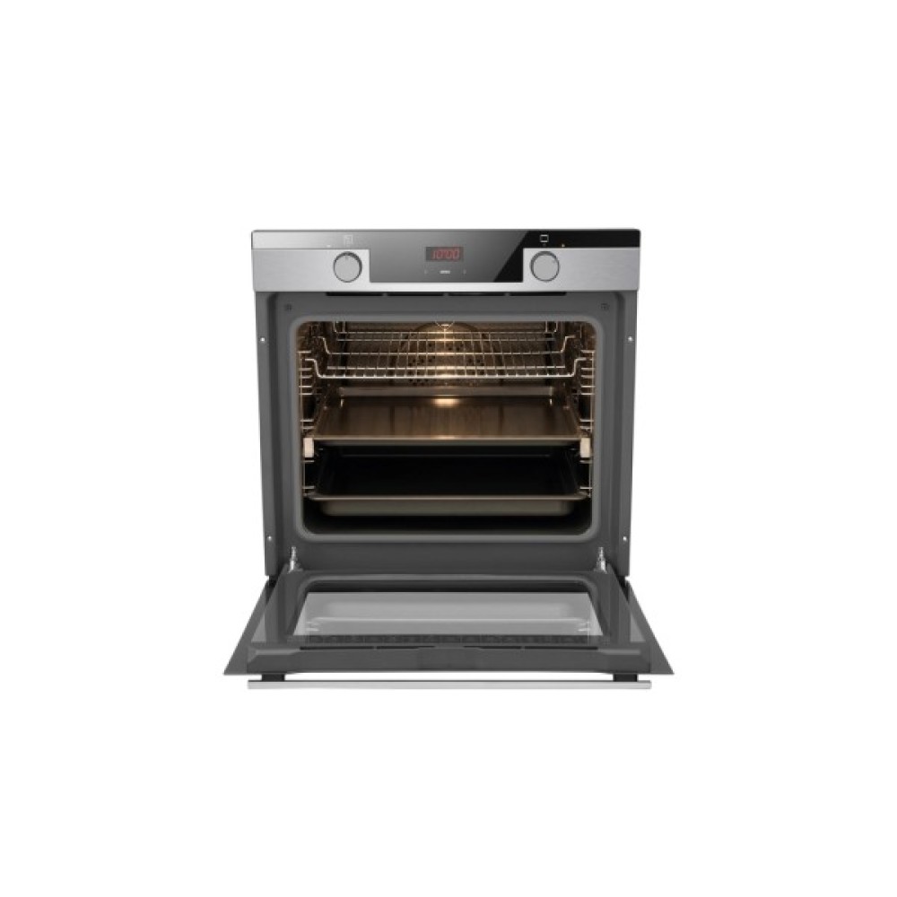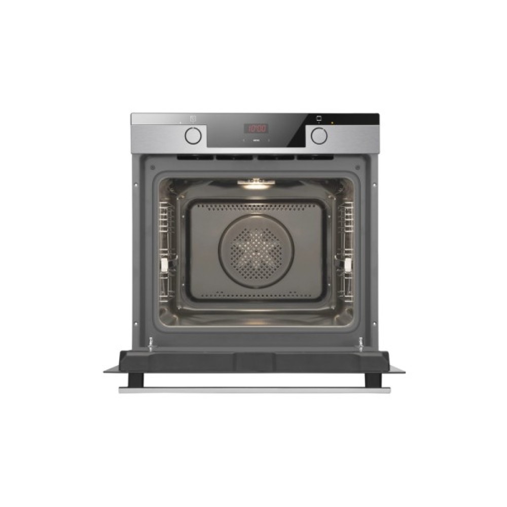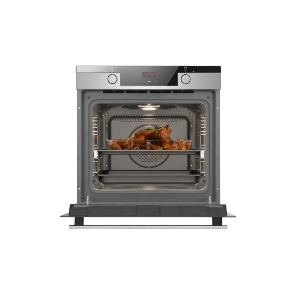 Ця духова шафа оснащена сенсорним LED дисплеєм з контролем часу випікання. Так, температура та функція випічки легко встановлюються за допомогою ергономічних регуляторів. Сенсорне управління дозволяє чітко встановити час приготування. Цей розумний дисплей запам’ятовує, коли час діставати страву з духової шафи, подасть звуковий сигнал і вимкне саму шафу, щоб ваша страва не перепtклась.