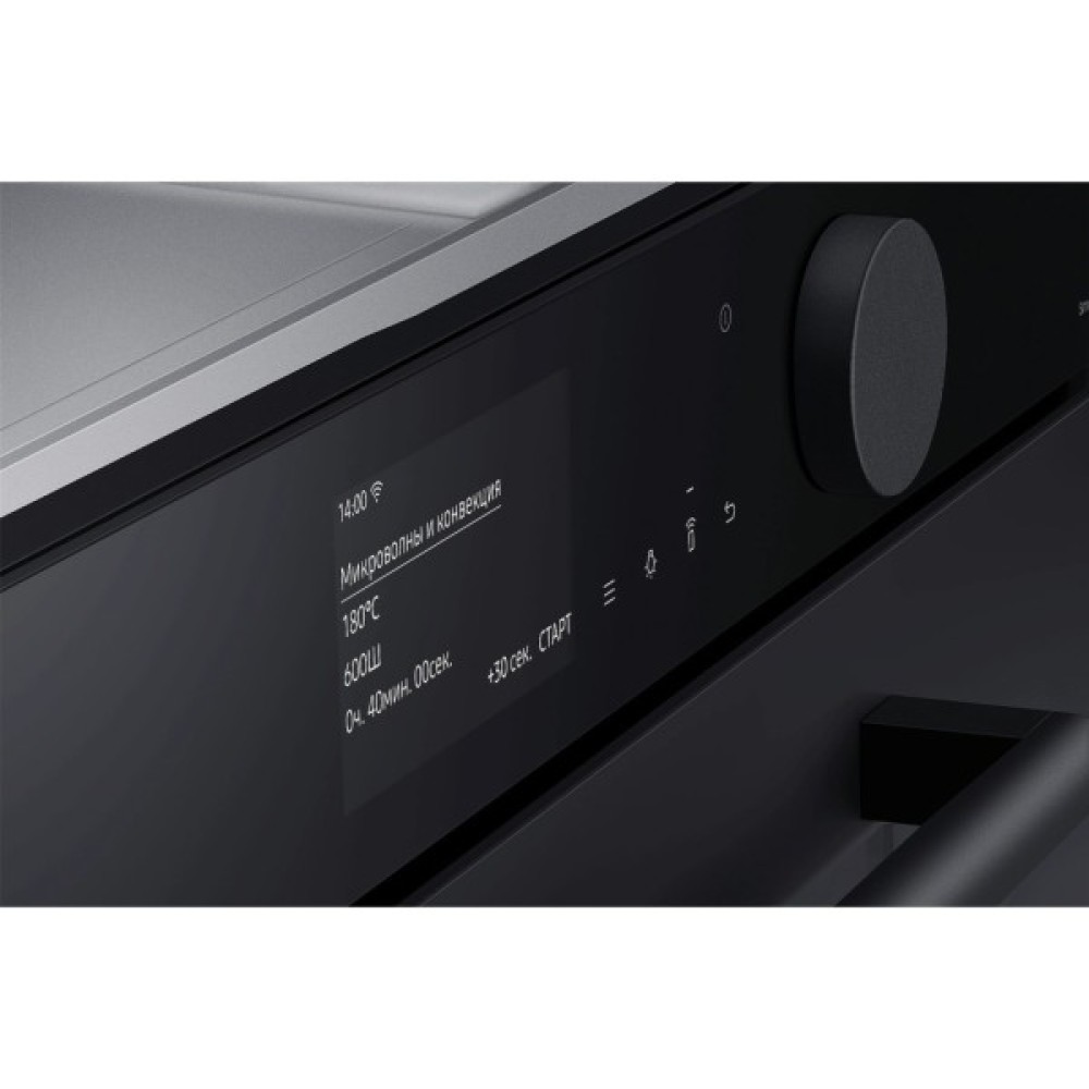 Побалуйте себе ексклюзивними стравами – тепер це просто. 4.3-дюймовий TFT-дисплей Full Touch з великим циферблатом відрізняється розкішним зовнішнім виглядом, а його кольоровий інтерфейс – стриманим дизайном. Він наочно показує стан усередині печі. До того ж, вам буде зручно керувати рядом функцій простим дотиком або поворотом циферблата.