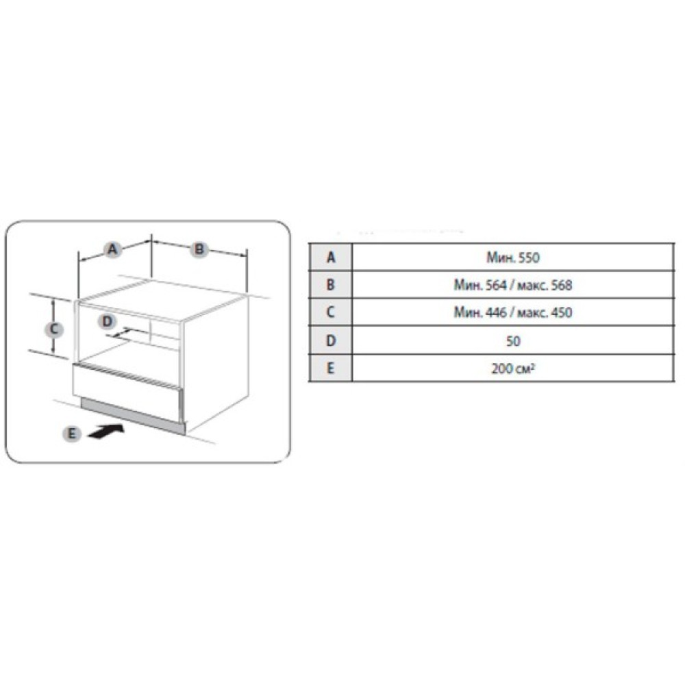 Розміри ніші для вбудовування 44.6-45 х 56.4-56.8 х 55 см