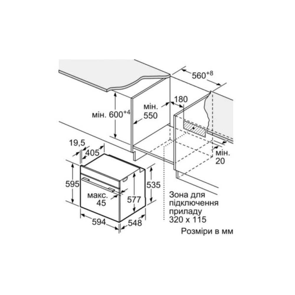 Розміри ніші для вбудовування 58.5-59.5 x 56-56.8 x 55 см