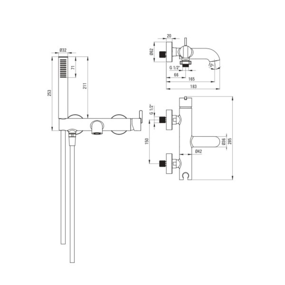 Комплектація: ручна лійка; змішувач; душовий шланг