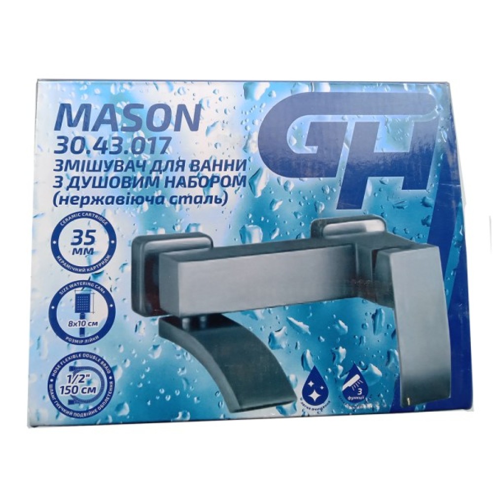 Змішувач для ванни з душовим набором GH - змішувач призначений для ванни. Змішування води відбувається під дією роботи керамічного картриджа. Має одноважільне управлінням.