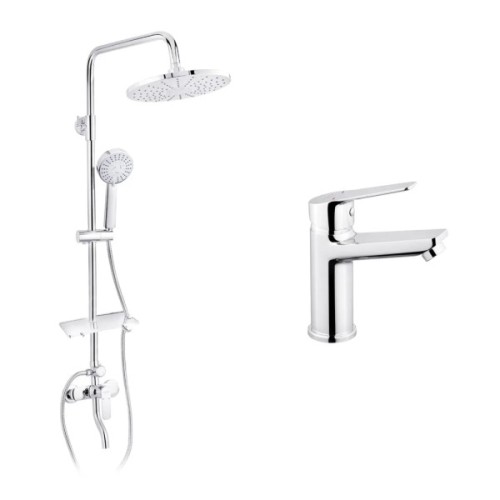 Комплект 2 в 1 ідеально підійде для повного облаштування ванної кімнати в єдиному сучасному стилі. У набір входять: душова система Kroner Armada-C064K, змішувач для умивальника Hagen-C010. Усі елементи виготовлені з високоякісної латуні та оснащені керамічними картриджами для плавної та довговічної роботи.