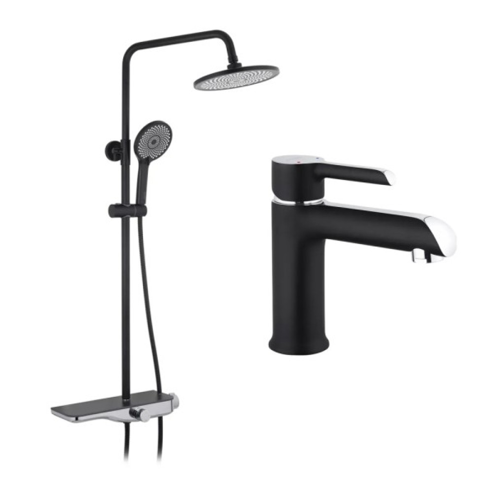 Комплектація: ручна лійка; тримач для душу; верхній душ; душова штанга; змішувач; кронштейн; душовий шланг; перемикач
