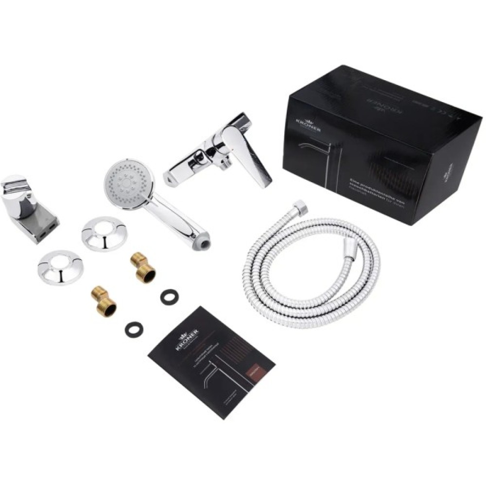 Змішувач для душу Kroner KRM Eifel - C050 - це втілення стилю і функціональності. Завдяки гладкій і блискучій поверхні у хромованому кольорі, він привносить сучасний блиск до вашого інтер'єру. Виготовлений з високоякісної латуні, змішувач гарантує довговічність та стійкість. Картриджний механізм змішування забезпечує плавне регулювання температури. Змішувач має круглу форму лійки. Настінний монтаж зберігає простір. Змішувач Kroner поєднує в собі естетику і практичність, створюючи ідеальний аксесуар для вашої душової кабіни.