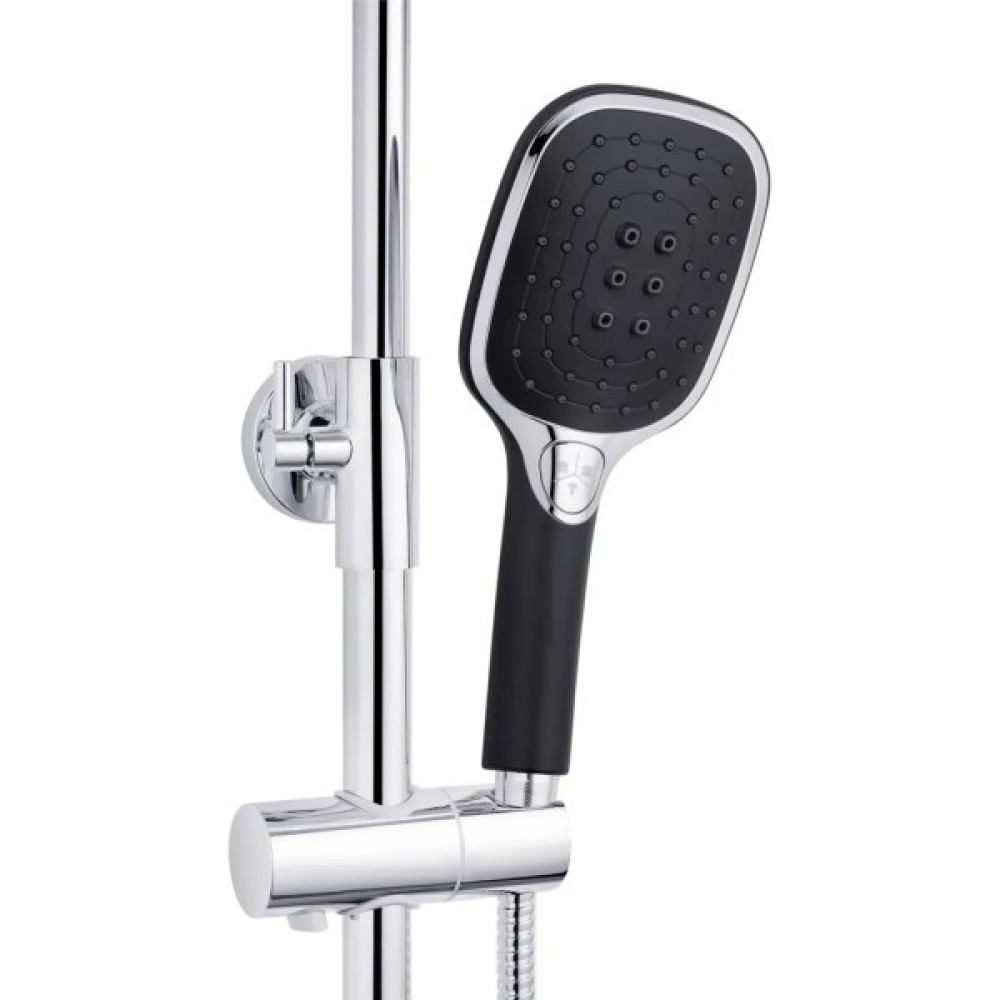 Комплектація ручна лійка; тримач для душу; верхній душ; душова штанга; змішувач; душовий шланг; перемикач