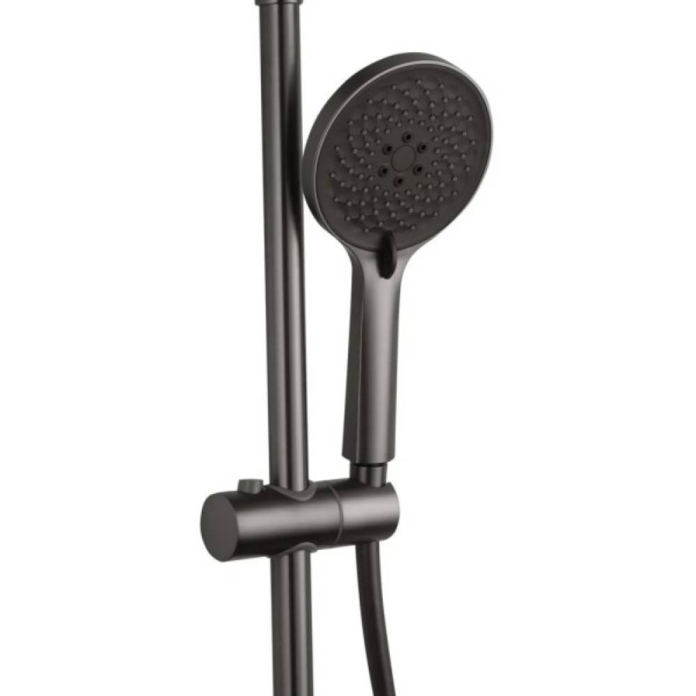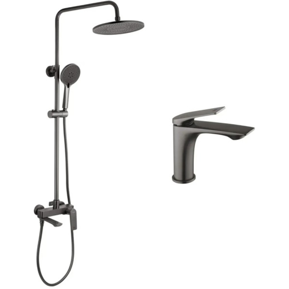 Комплектація: ручна лійка; тримач для душу; верхній душ; душова штанга; змішувач; шлангове під'єднання; душовий шланг; вилив для ванни