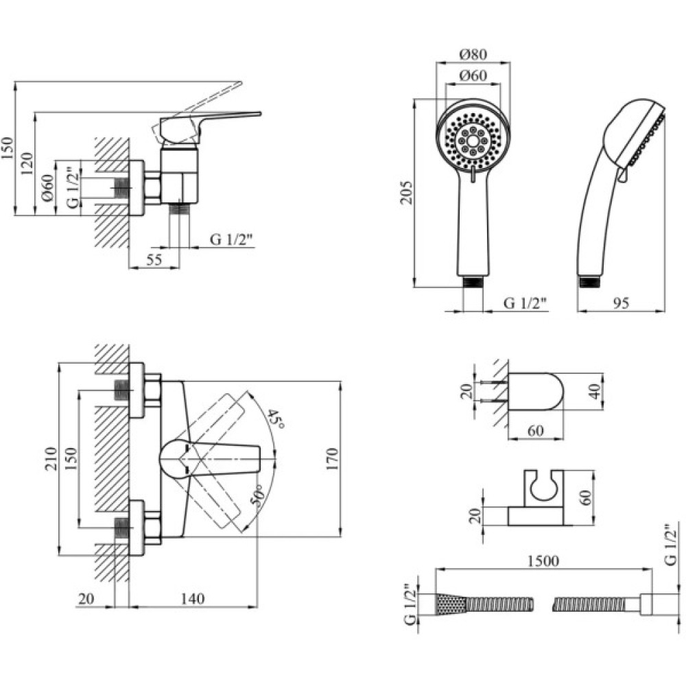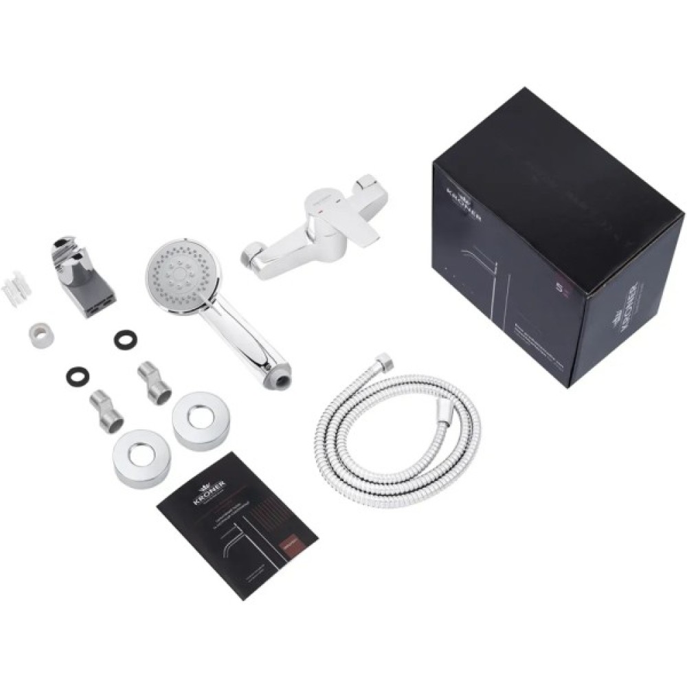 Ця модель змішувача Kroner KRP Hagen - C050 також включає ручну лійку з трьома режимами поливу, забезпечуючи вам різноманітність водних потоків. Кругла форма лійки діаметром 80 мм надає їй елегантного вигляду. Довжина душового шланга становить 1500 мм, а завдяки зручному тримачеві лійку можна легко встановити на стіні, забезпечуючи зручність у використанні. Насолоджуйтесь комфортом, стилем та надійністю змішувача для душу Kroner KRP Hagen - C050.