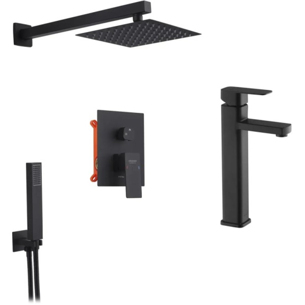 Душовий гарнітур Kroner Kubus-SCH082 + змішувач Edelstahl Kubus-SCH010-3 (CVS30178)