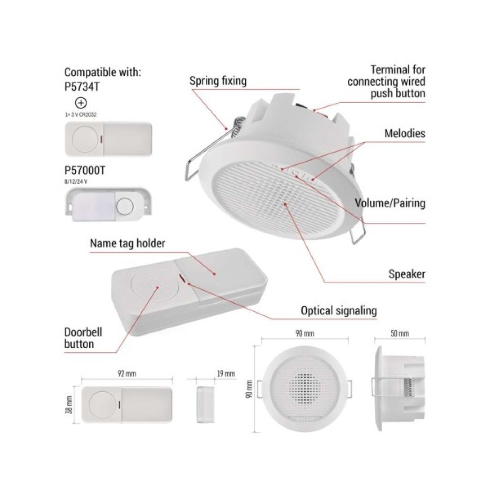Дверний дзвінок EMOS P57103 (дротовий/бездротовий) Багатофункціональний дверний дзвінок, що поєднує гнучкість бездротового зв'язку та можливість дротового підключення – відмінне рішення для дому, офісу чи дачі.