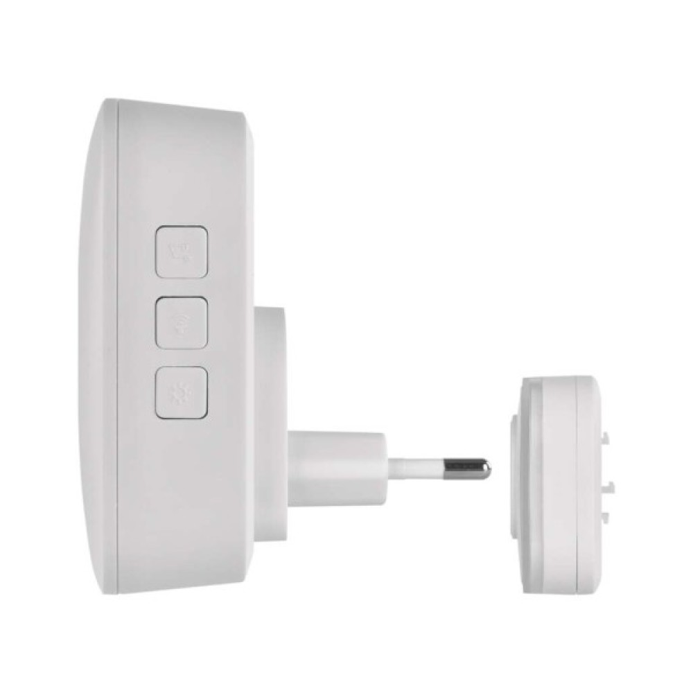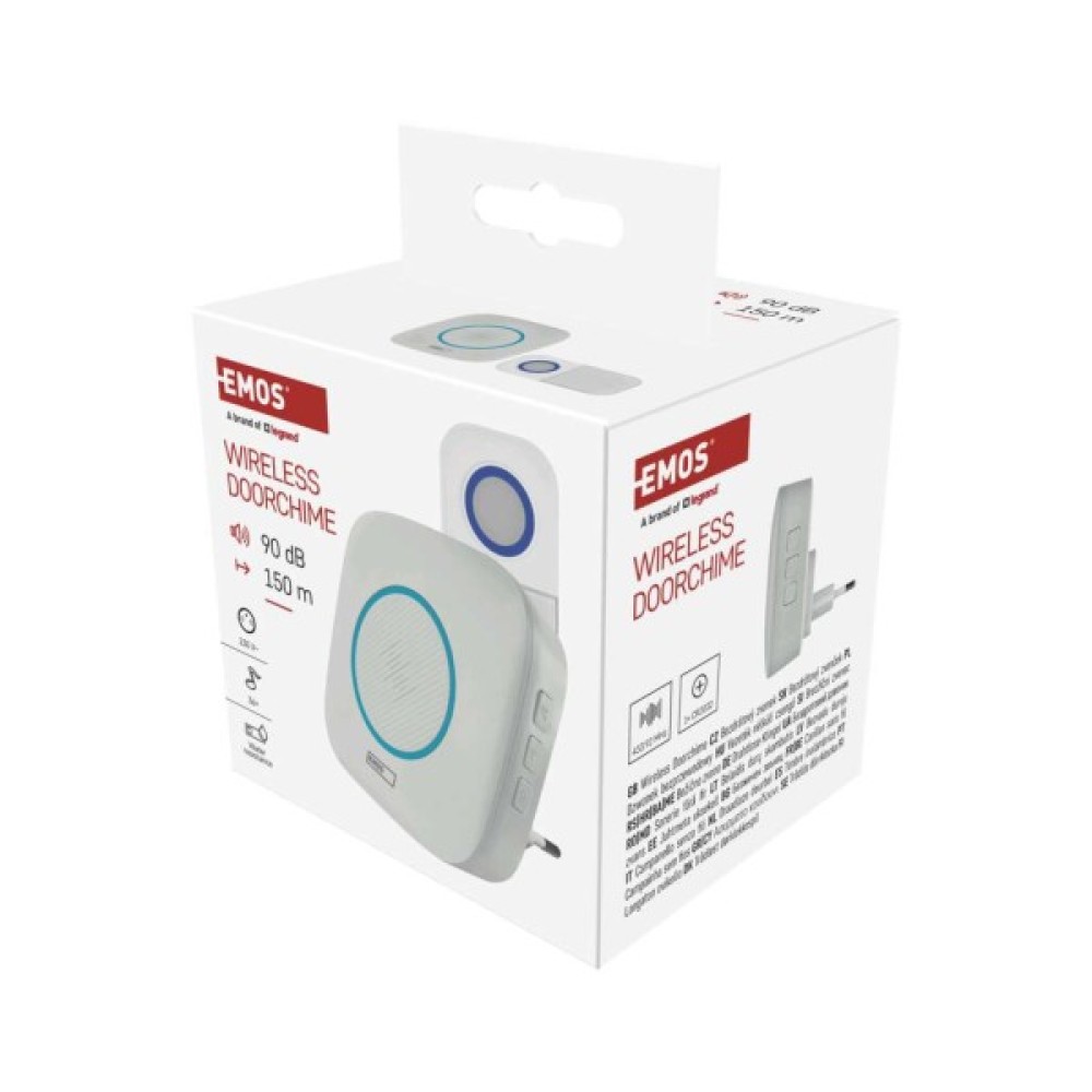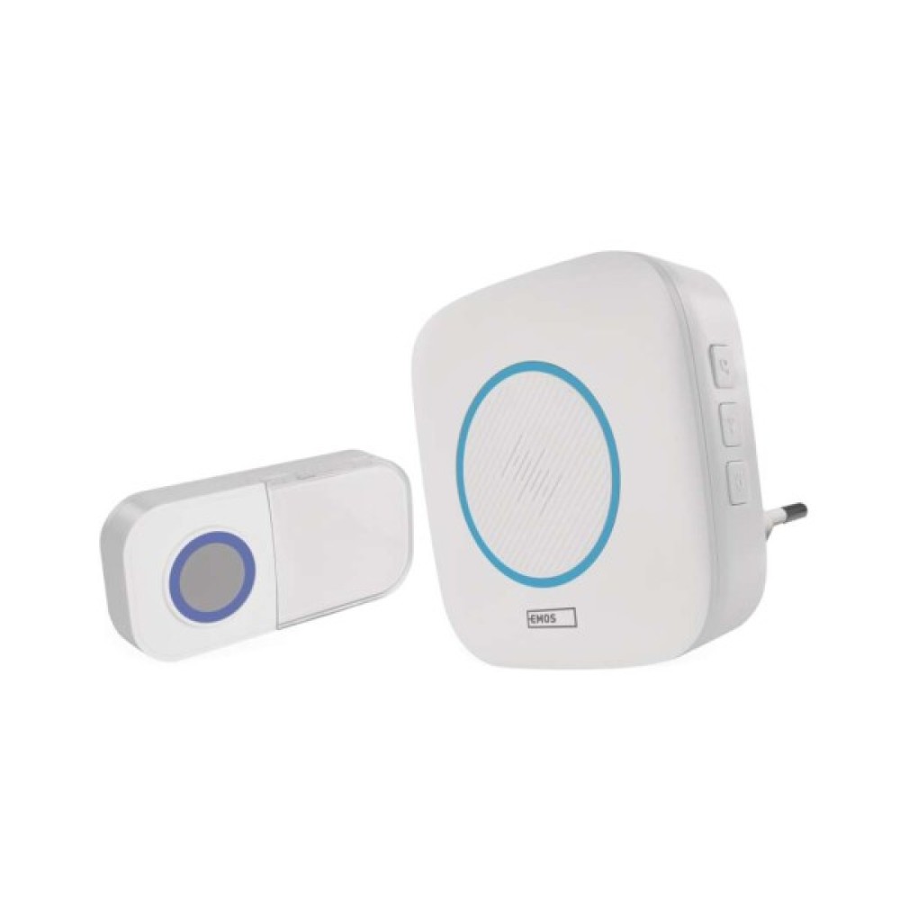 Бездротовий дверний дзвінок EMOS P5737 — зручне рішення для будинку, квартири чи офісу. Пристрій працює на радіочастоті 433 МГц, що забезпечує стабільний сигнал без необхідності прокладання дротів.
