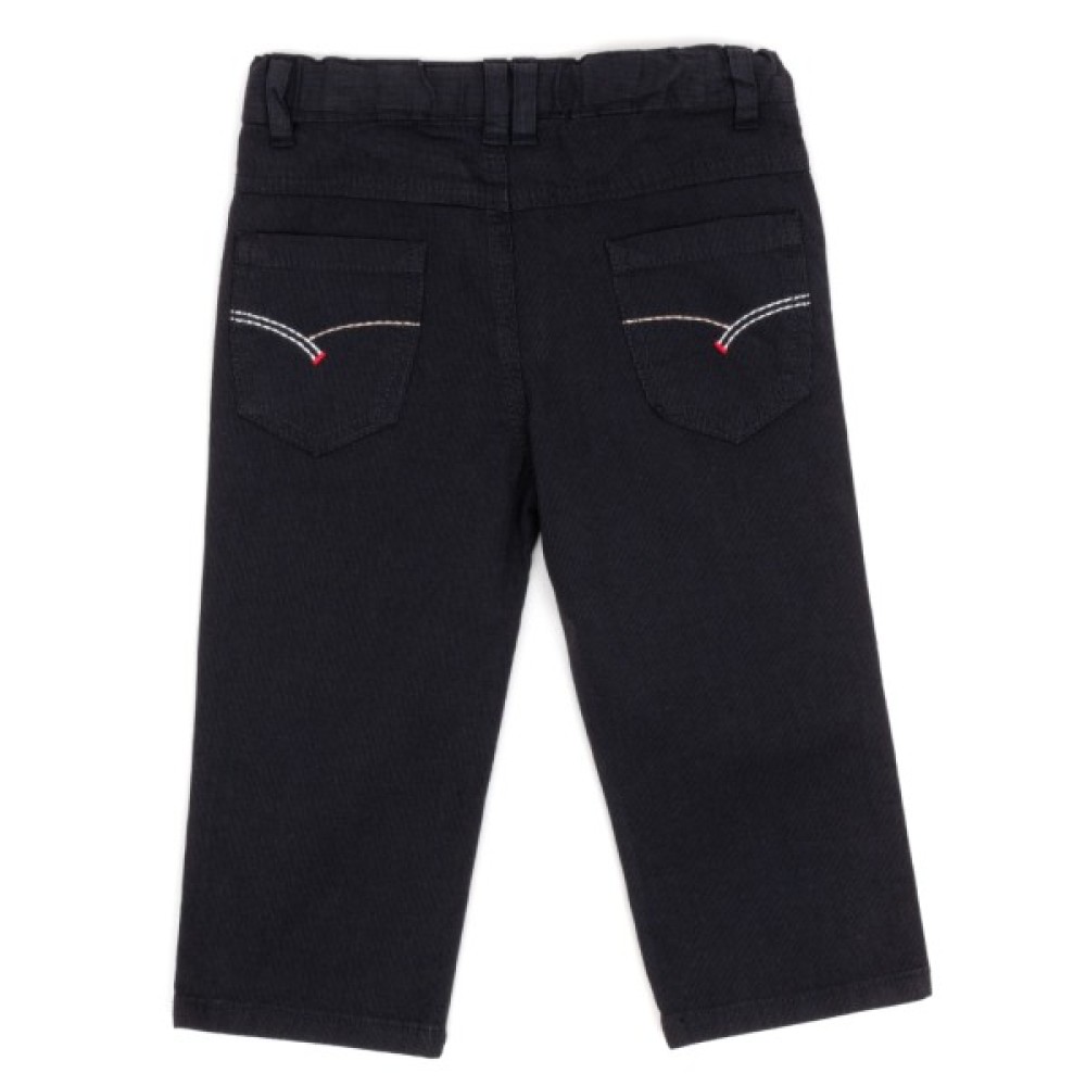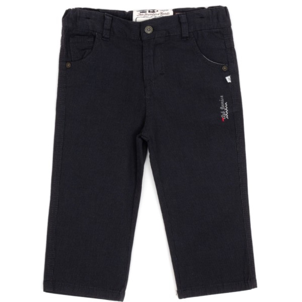 - Тонкі, літні штани в кольорі графіт в стилі під джинс, зі зручною посадкою та стильним мінімалістичним декором для хлопчика від відомої торгової марки AZIZ.