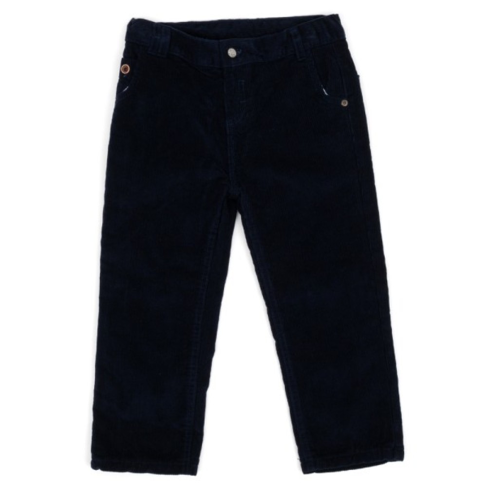 • Затишні класичні вельветові штани підвищеного комфорту (на трикотажній підкладці), зі зручною посадкою, в красивому глибокому темно-синьому кольорі, без зайвого декору для хлопчика.