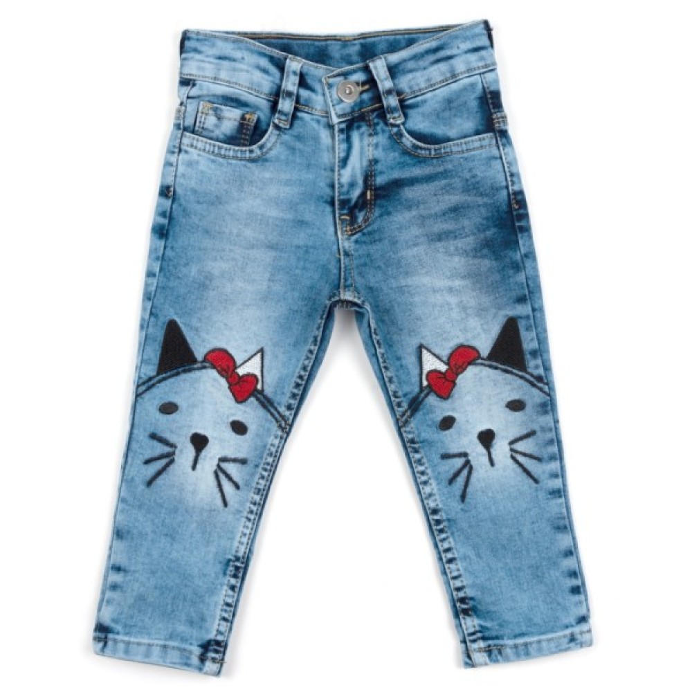 Модні стрейчеві джинси з котиками для дівчинки від ТМ «Breeze».