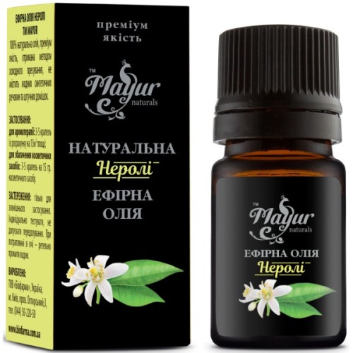 Завдяки ароматерапевтичним та косметичним властивостям натуральна ефірна олія неролі від бренда Mayur має всі шанси на постійне місце у вашому б'юті-арсеналі. Маючи противірусні та протизапальні властивості, вона підвищує імунітет, благотворно впливає на нервову систему і допомагає боротися зі шкірними висипаннями. Лише кілька крапель цього засобу зроблять прийом ванни ще більш розслаблювальним та відновлювальним.