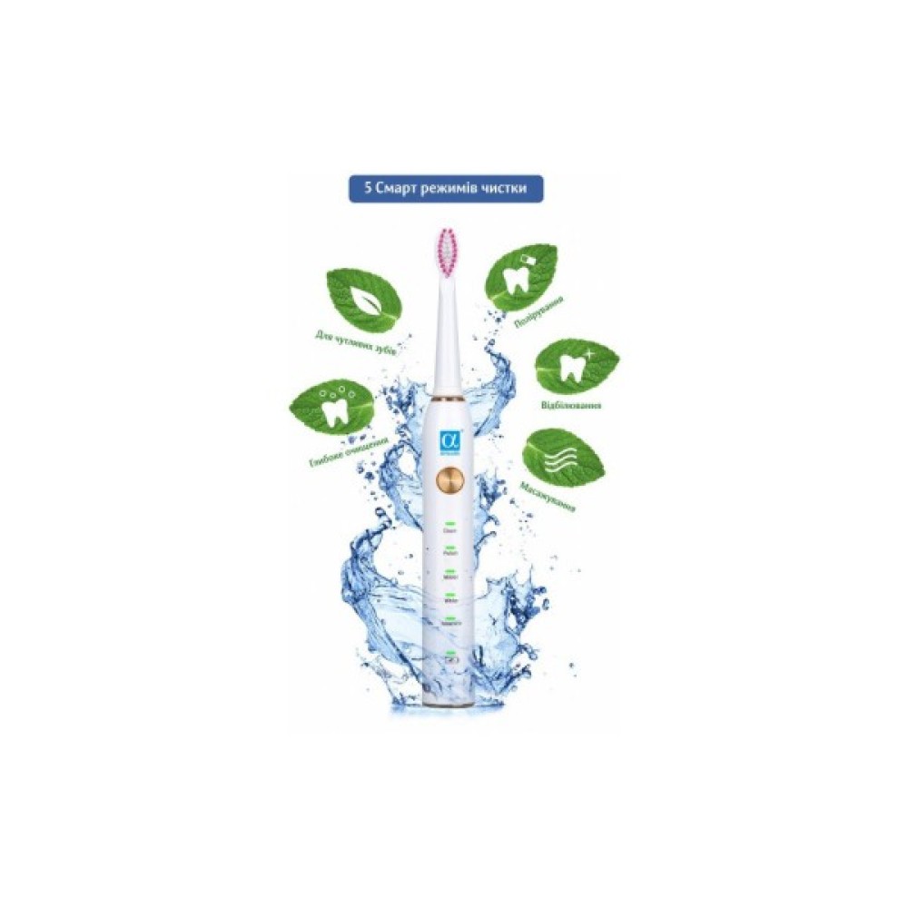 Електрична зубна щітка AHealth SMART SONIC SMILE 1 на акумуляторі зі звуковою вібрацією 40 000 циклів на хвилину допомагає швидко та якісно видаляти зубний наліт і залишки їжі.