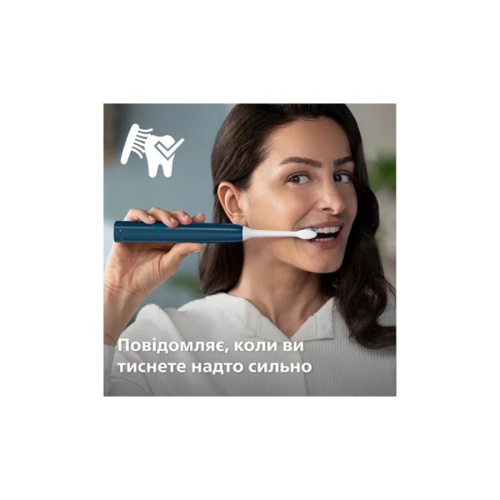 Вбудований датчик тиску автоматично визначає ваш натиск, попереджає вас і автоматично зменшує вібрацію зубної щітки для захисту ясен. Зубна щітка подаватиме пульсуючий звук як нагадування для полегшення тиску. 7 з 10 людей вважають, що ця функція допомогла їм краще чистити зуби.